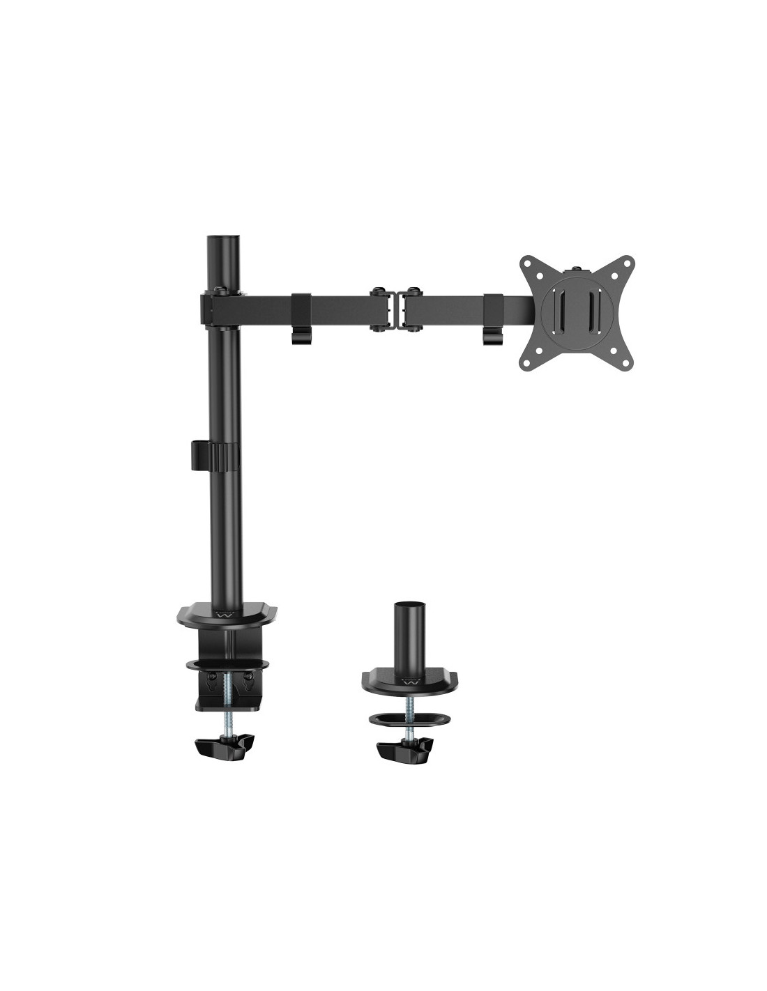 Su Ewent EW1512 tiene tres puntos de giro por monitor para establecer la distancia de visualización ideal. El soporte para escritorio de Ewent es adecuado para dos pantallas de hasta 27 pulgadas con un peso máximo de 8 kg cada una. Su EW1512 cuenta con un soporte VESA de 75x75 mm y 100x100 mm. El sistema de instalación sencillo posibilita el acoplamiento de dos monitores al soporte de escritorio sin que necesite ayuda de nadie. El soporte de escritorio Ewent cuenta con todo lo necesario para el montaje tanto para soporte de abrazadera como para soporte de ranura.