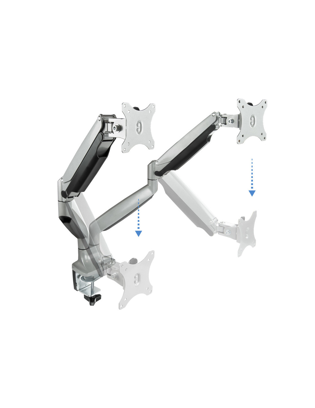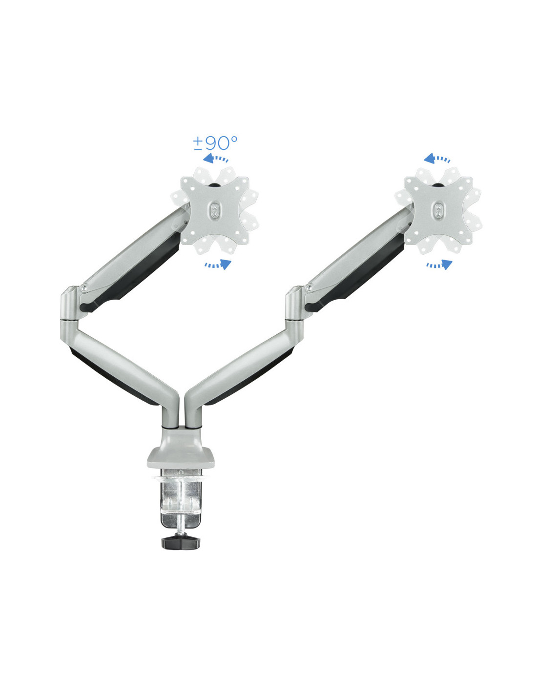 - Soporte de mesa orientable para 2 pantallas (monitor / plasma / LCD / LED) de entre 13" a 32" (depende de la instalación y del espacio disponible) con 3 puntos de giro