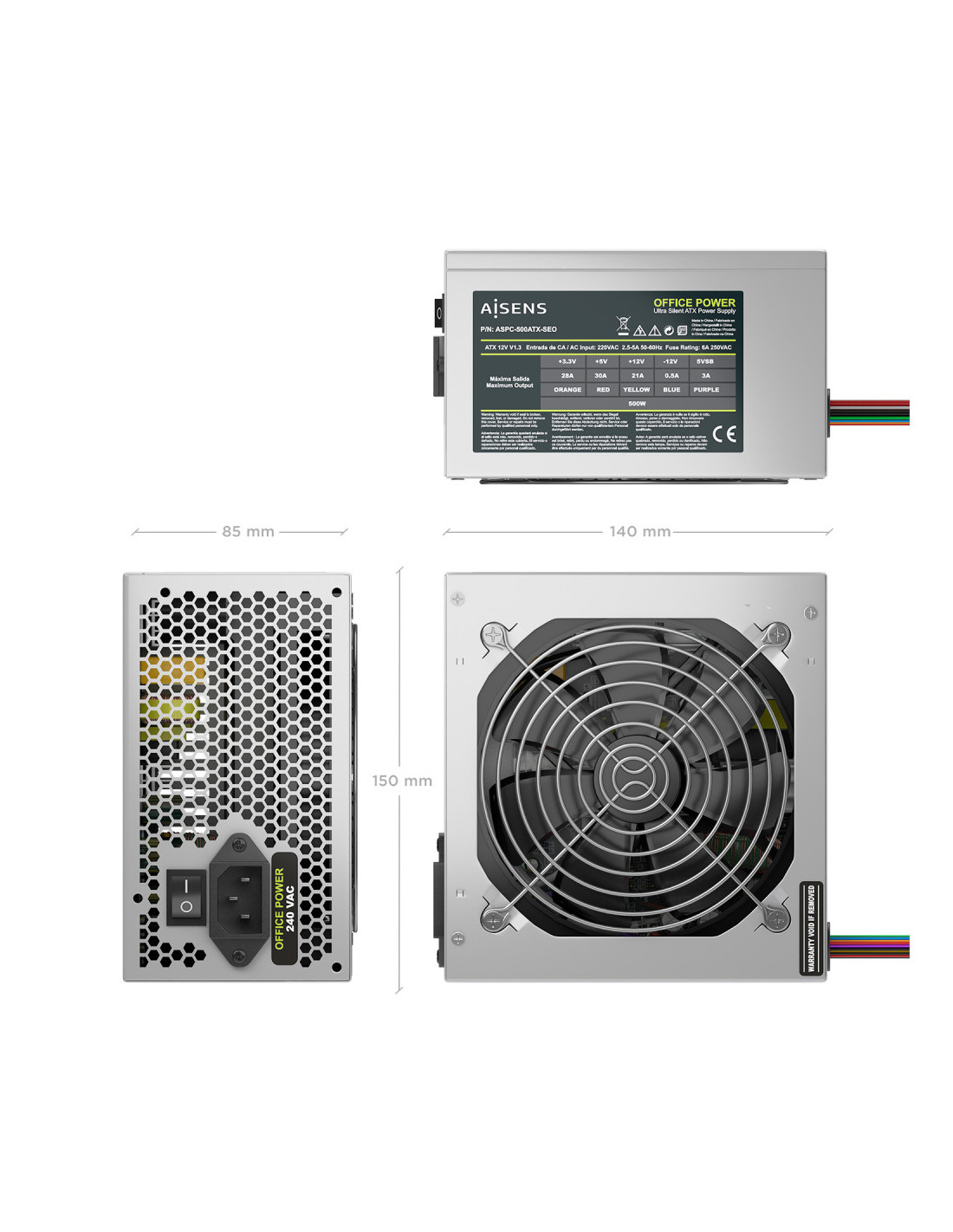 AISENS ASPC-500ATX-SEO Unitat d'alimentació 500 W 20+4 pin ATX ATX Plata