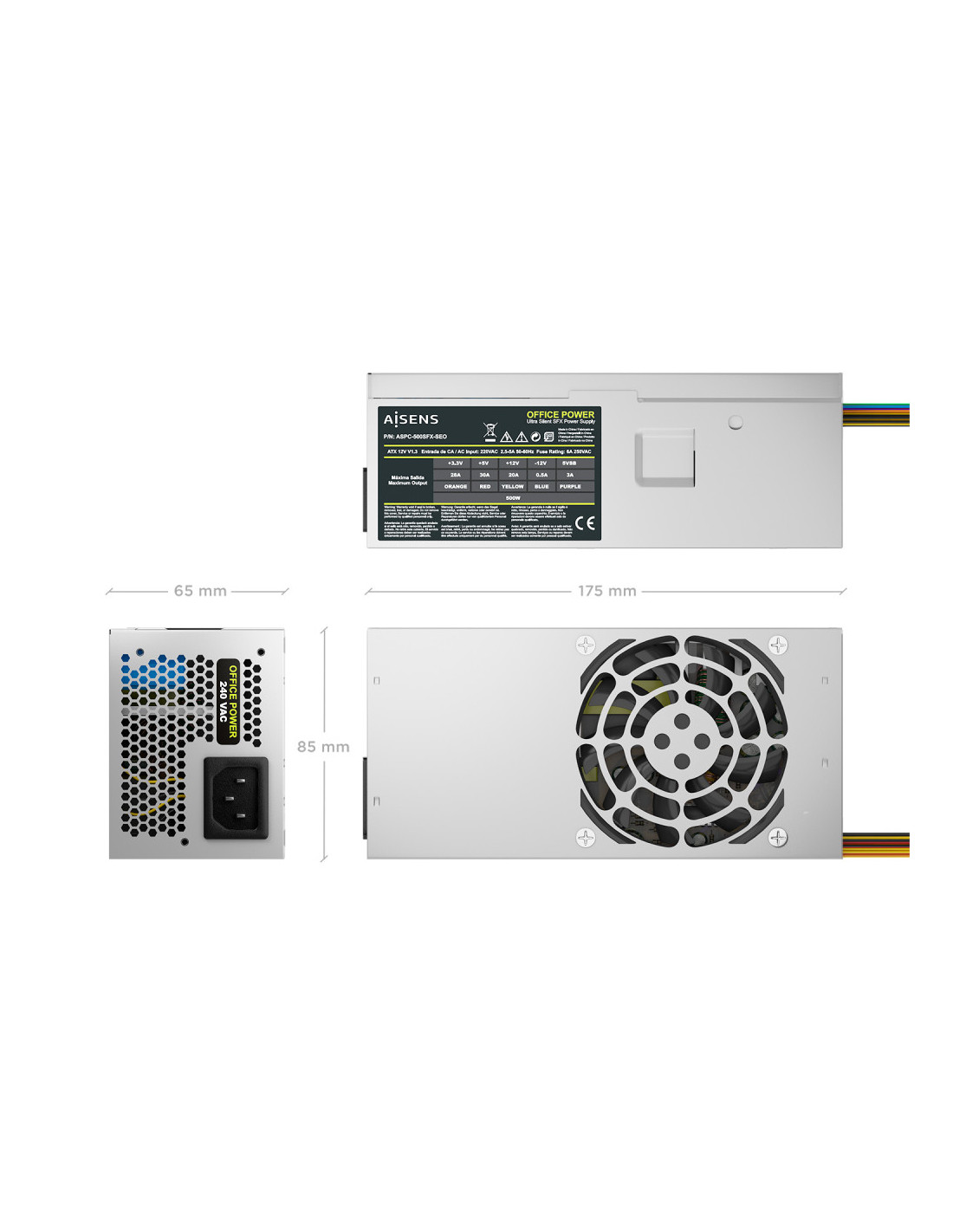 AISENS ASPC-500TFX-SEO Unitat d'alimentació 500 W 20+4 pin ATX TFX Plata