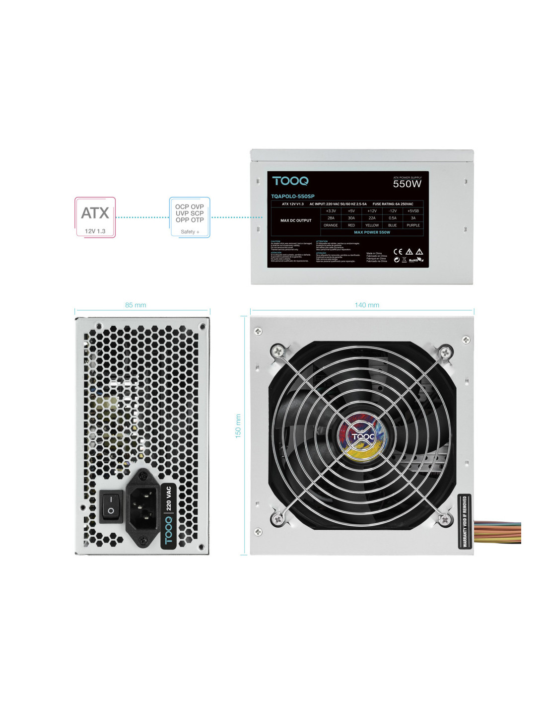TooQ TQAPOLO-550SP Unitat d'alimentació 550 W 20+4 pin ATX ATX Plata