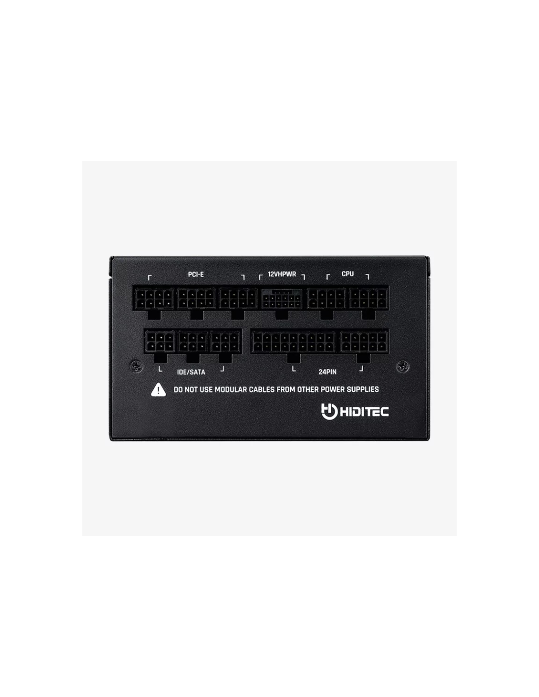 Hiditec GDX1050 v2. Potencia total: 1050 W, Voltaje de entrada AC: 100 - 240 V, Corriente máxima de salida (+3.3V): 20 A. Alimentador de energía para tarjeta madre: 20+4 pin ATX, Tipo de cableado: Totalmente modular. Utilizar con: PC, Factor de forma de fuente de alimentación (PSU): ATX, Certificación 80 PLUS: 80 PLUS Gold. Color del producto: Negro, Tipo de enfriamiento: Activo, Diámetro de ventilador: 14 cm. Ancho: 150 mm, Profundidad: 86 mm, Altura: 160 mm
