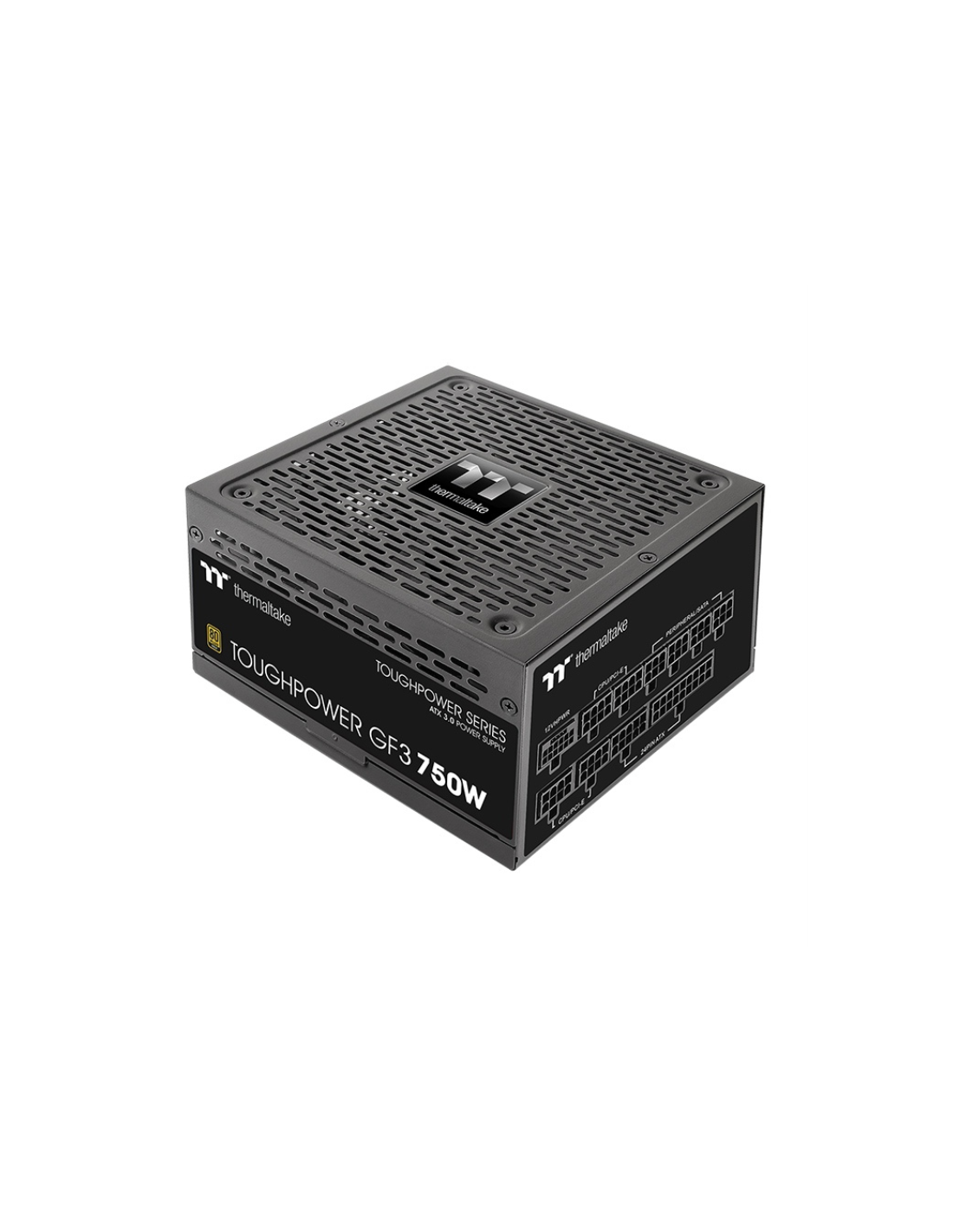 Thermaltake Toughpower GF3. Potencia total: 750 W, Voltaje de entrada AC: 100 - 240 V, Frecuencia de entrada AC: 50 - 60 Hz. Alimentador de energía para tarjeta madre: 24-pin ATX, Longitud del cable de alimentación de la placa base: 60 cm, Longitud del cable de alimentación SATA: 500,650,800,950 mm. Utilizar con: PC, Certificación 80 PLUS: 80 PLUS Gold, Tecnología de rodamientos: FDB. Color del producto: Negro, Diámetro de ventilador: 13,5 cm, Número de ventiladores: 1 Ventilador(es). Certificación: CE/UKCA