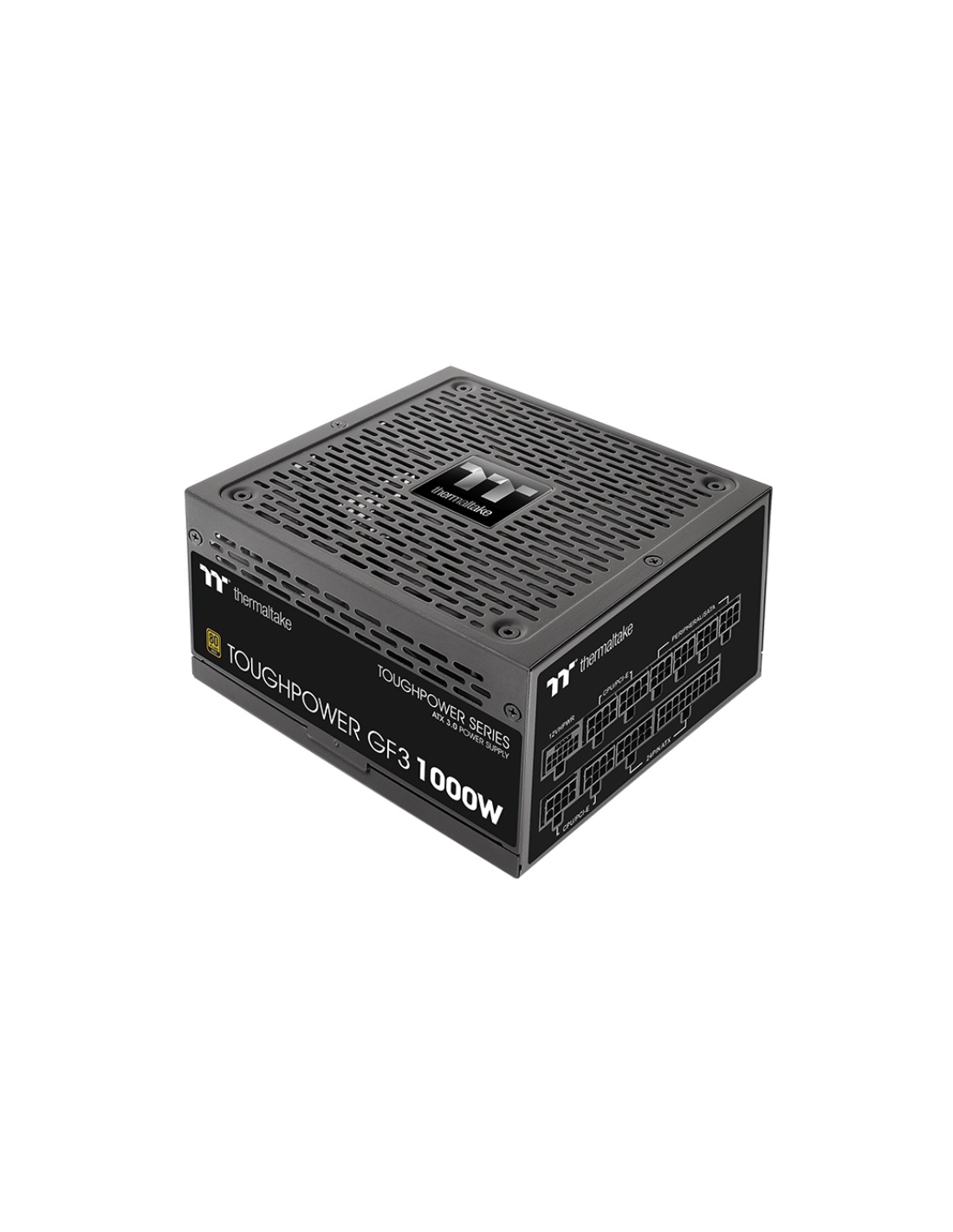 Thermaltake Toughpower GF3. Potencia total: 1000 W, Voltaje de entrada AC: 100 - 240 V, Frecuencia de entrada AC: 50 - 60 Hz. Alimentador de energía para tarjeta madre: 24-pin ATX, Longitud del cable de alimentación de la placa base: 60 cm, Longitud del cable de alimentación SATA: 500,650,800,950 mm. Utilizar con: PC, Certificación 80 PLUS: 80 PLUS Gold, Tecnología de rodamientos: FDB. Color del producto: Negro, Diámetro de ventilador: 13,5 cm, Número de ventiladores: 1 Ventilador(es). Certificación: CE/UKC