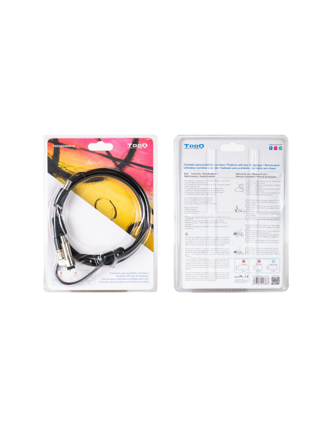 CABLE DE SEGURIDAD NANO CON LLAVE PARA PORTÁTILES TQCLKC0045-G