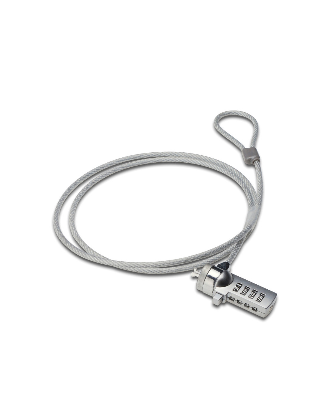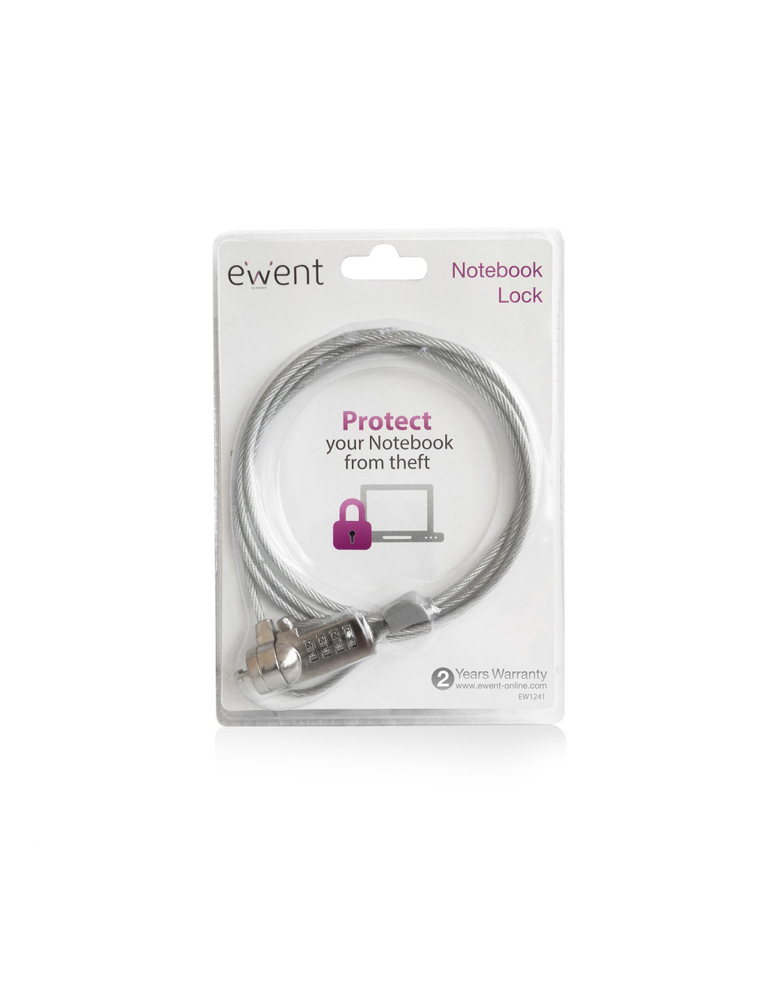 El Candado para Portátil EW1241 protege su ordenador portátil y su escritorio contra robos. Funciona como un candado para bicicletas. Simplemente enrolle el cable de acero de 1,5 metros alrededor de un objeto inamovible, como una pared, un radiador o un escritorio; y para terminar, introduzca una combinación de números para activar el bloqueo.