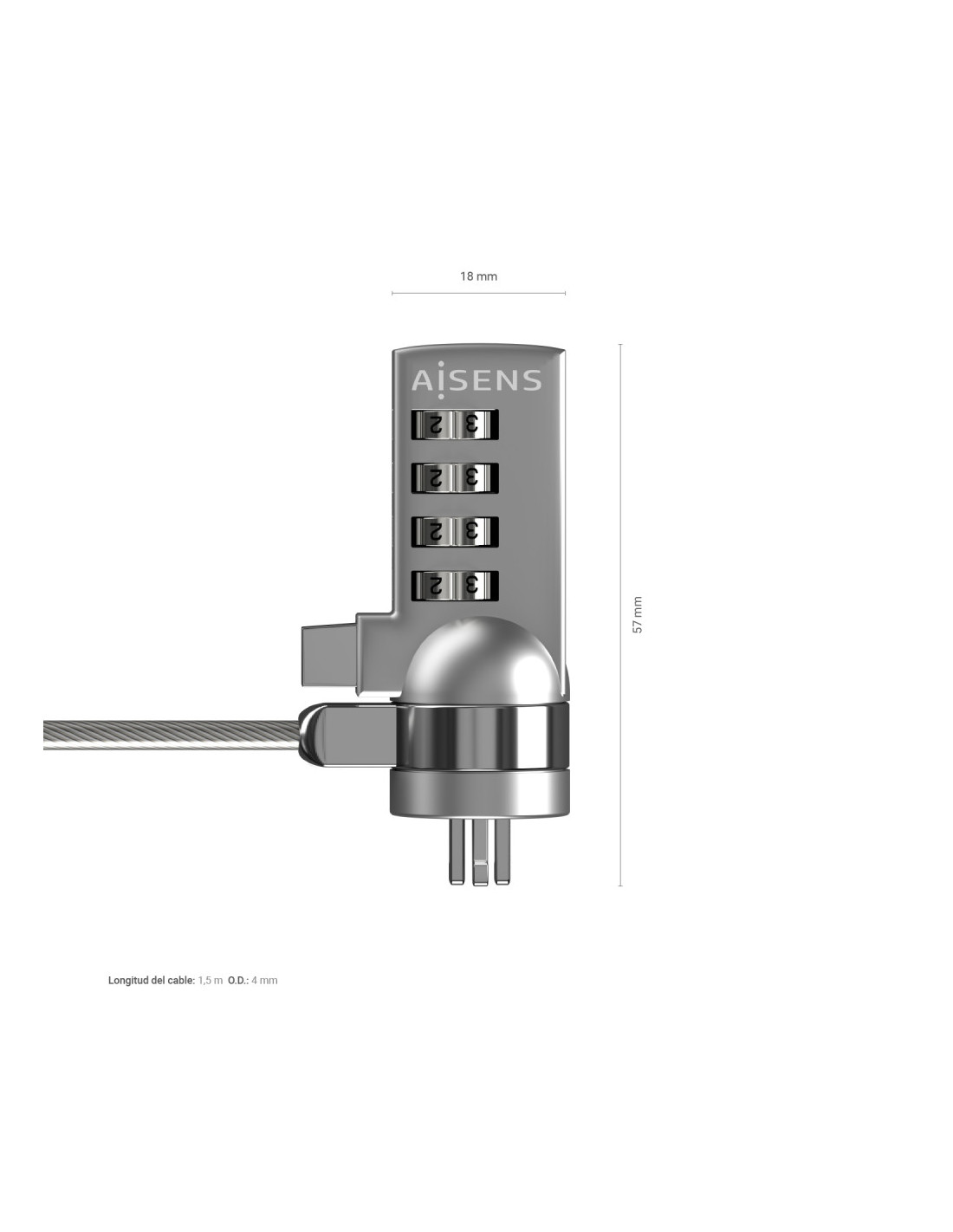 AISENS® – Cable de seguridad de acero galvanizado con cerradura de combinación para ordenador, monitor, portátil etc.