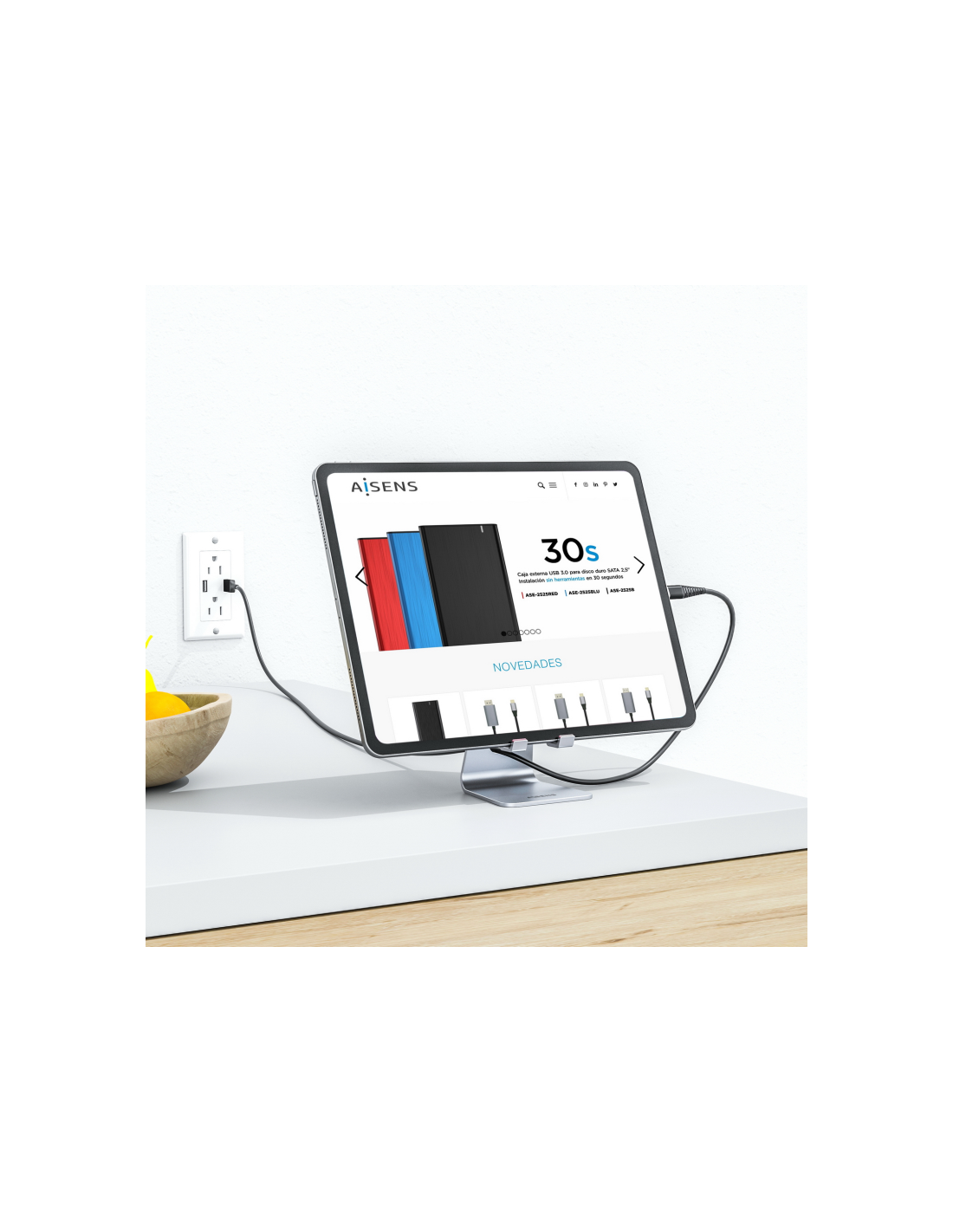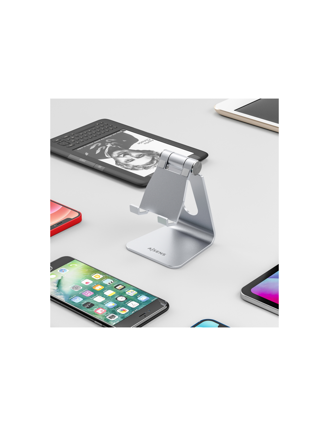 Soporte de sobremesa ajustable tamaño M para teléfono móvil o tablet.