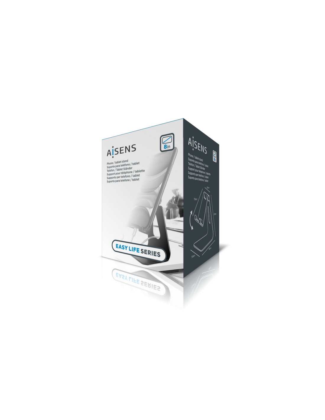 AISENS Soporte De Sobremesa Tamaño M Ajustable (1 Pivote) Para Movil / Tablet, Plata. Tipo de dispositivo móvil: Teléfono móvil/smartphone, Tablet/UMPC, Tipo: Soporte pasivo, Uso adecuado: Escritorio, Interior, Color del producto: Plata