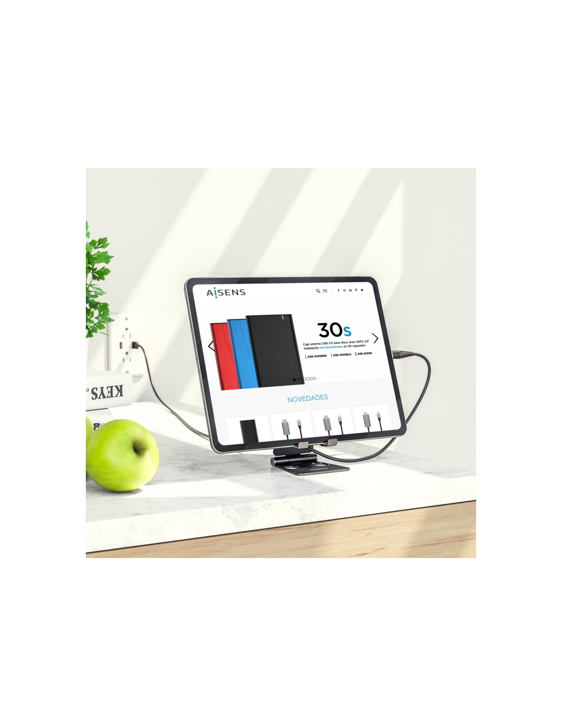AISENS Soporte De Sobremesa Tamaño M Ajustable (2 Pivotes) Para Movil / Tablet, Negro. Tipo de dispositivo móvil: Teléfono móvil/smartphone, Tablet/UMPC, Tipo: Soporte pasivo, Uso adecuado: Escritorio, Interior, Color del producto: Negro