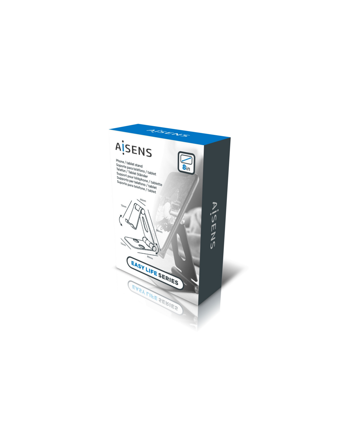 AISENS Soporte De Sobremesa Tamaño M Ajustable (2 Pivotes) Para Movil / Tablet, Negro