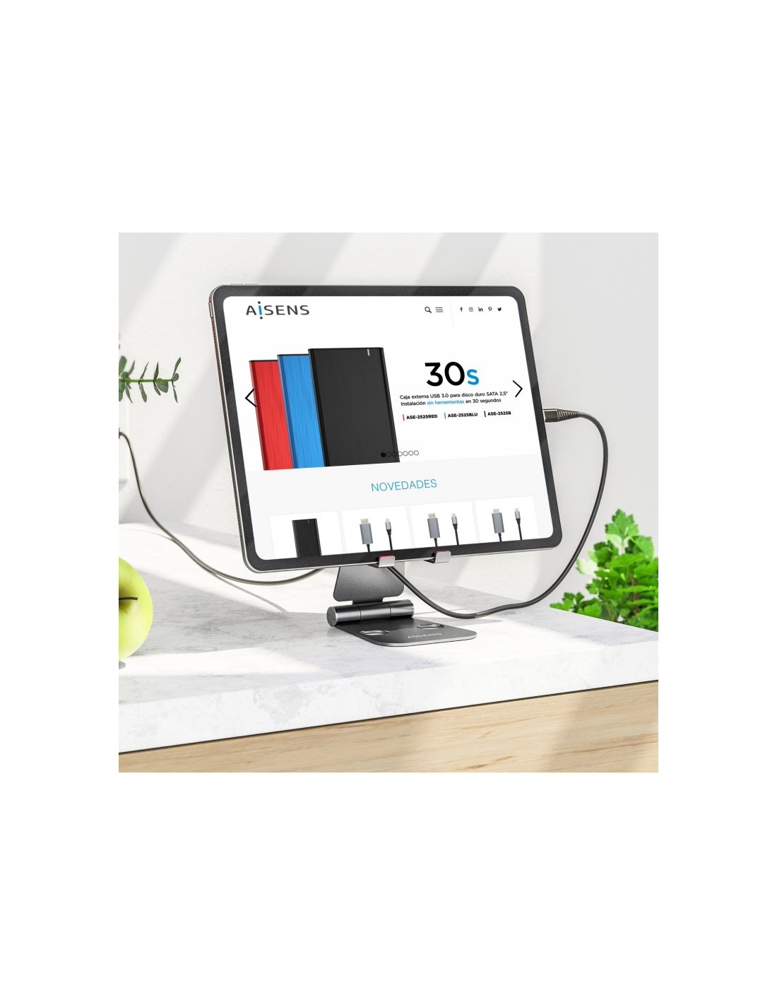 AISENS Soporte De Sobremesa Tamaño XL Ajustable (2 Pivotes) Para Movil / Tablet, Gris. Tipo de dispositivo móvil: Tablet/UMPC, Tipo: Soporte pasivo, Uso adecuado: Escritorio, Interior, Color del producto: Gris