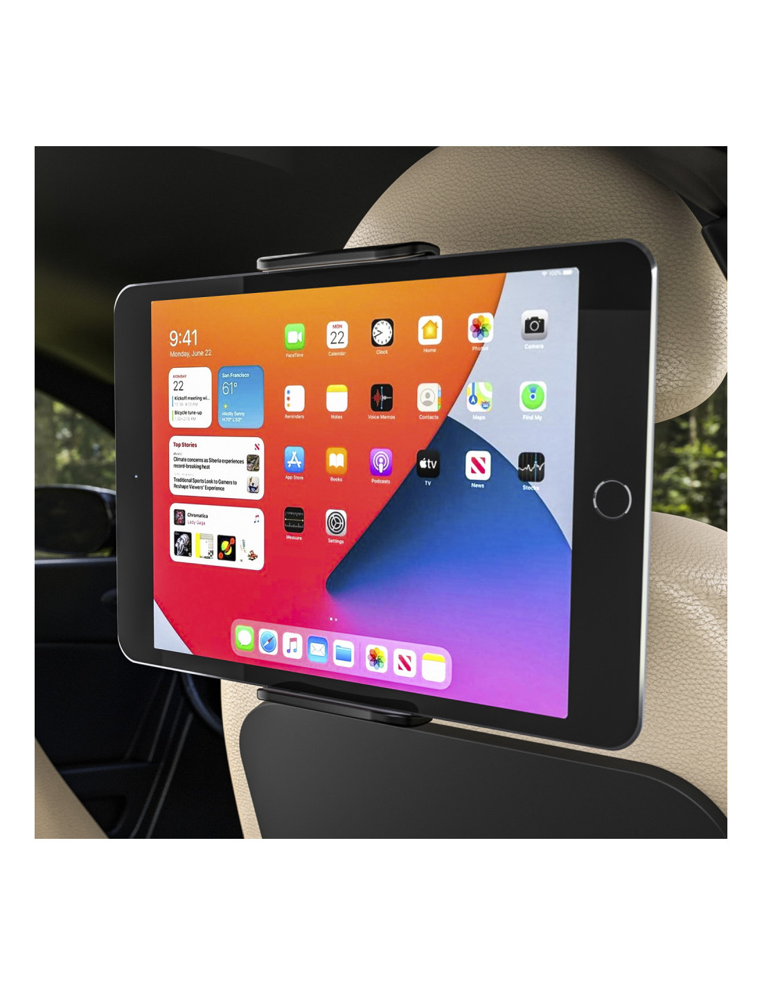 El soporte para tablet del reposacabezas del automóvil tiene una conexión de bola giratoria para una rotación de (360) grados, por lo tanto es muy cómodo para inclinar o girar el soporte con el fin de obtener un ángulo de visión perfecto.