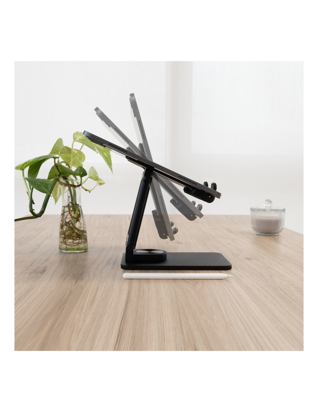 Halley y Luna, nuestros nuevos soportes para tablet de hasta 12,9” te ofrecen toda la comodidad y libertad de movimiento que necesites en cada momento. Podrás girarlos 360º para tener un amplio rango de visión. Gracias a sus almohadillas antideslizantes la estabilidad de la tablet está garantizada. Y como pueden plegarse, podrás guardarlos fácilmente y llevarlos contigo hasta el infinito y más allá.