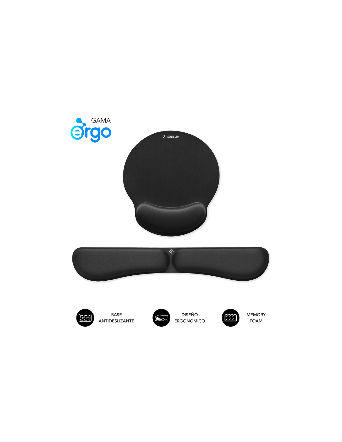 SUBBLIM Pack Alfombrilla de Ratón Ergonómica + Reposamuñecas Teclado – Espuma elástica, Superficie Microtexturizada Impermeable,