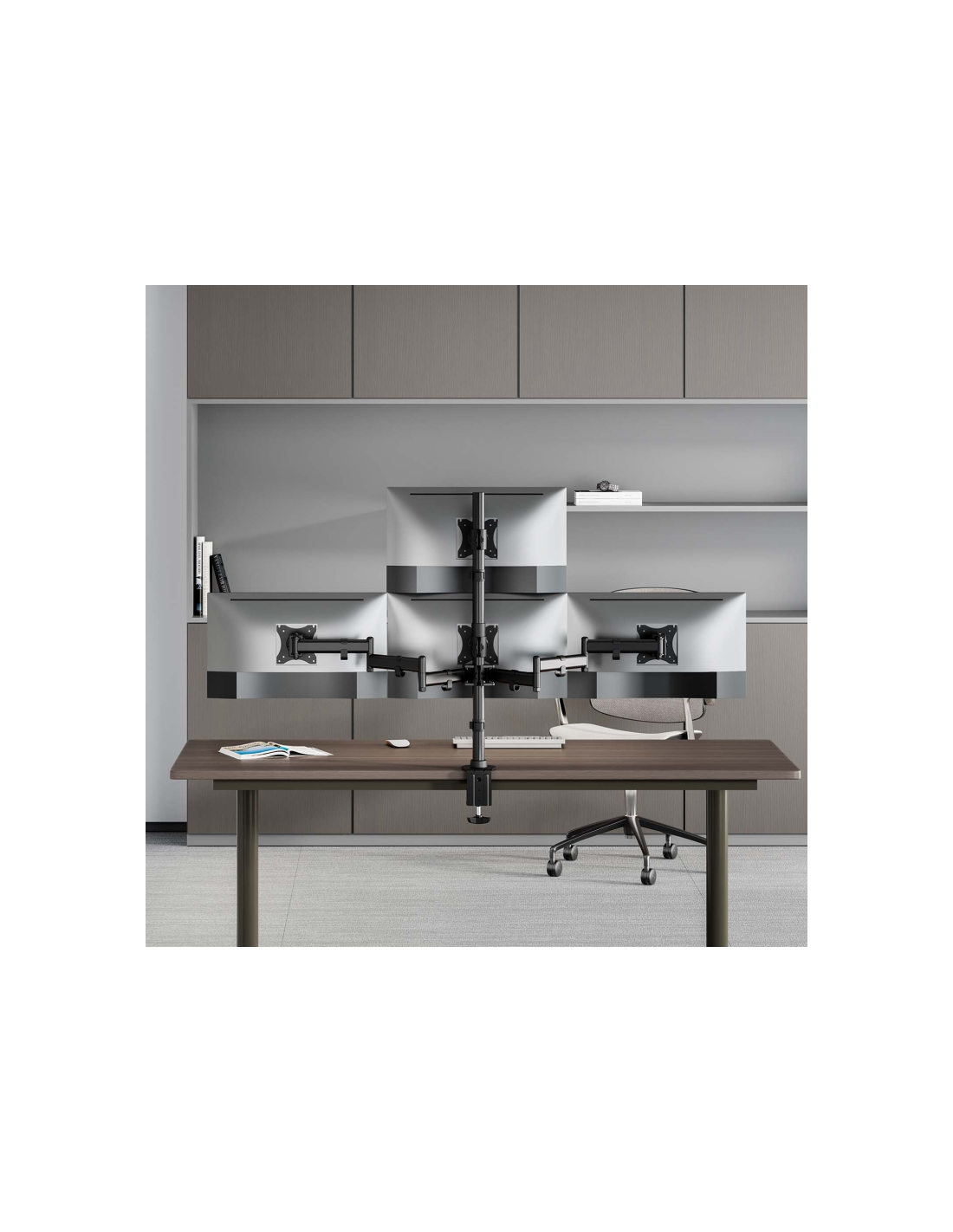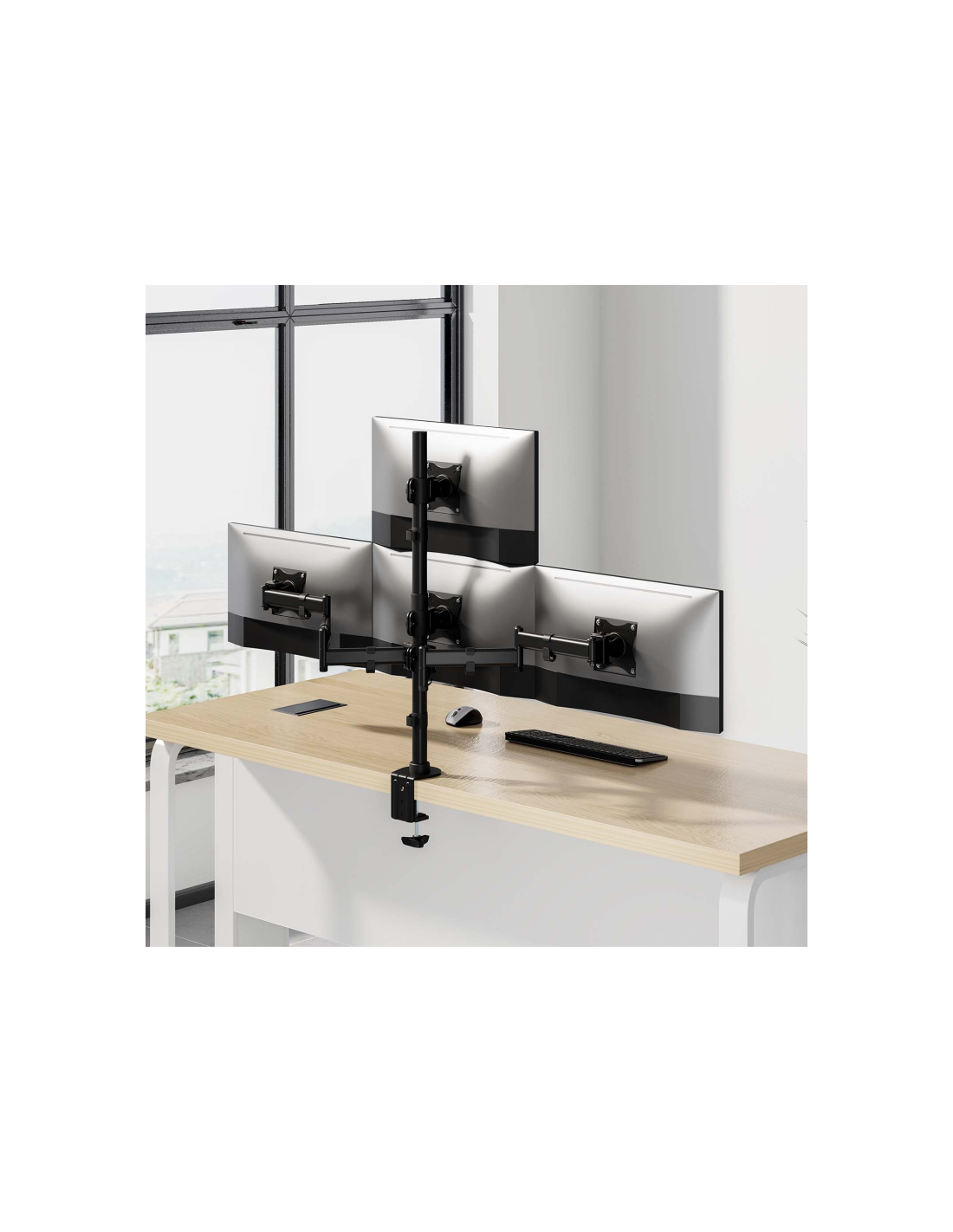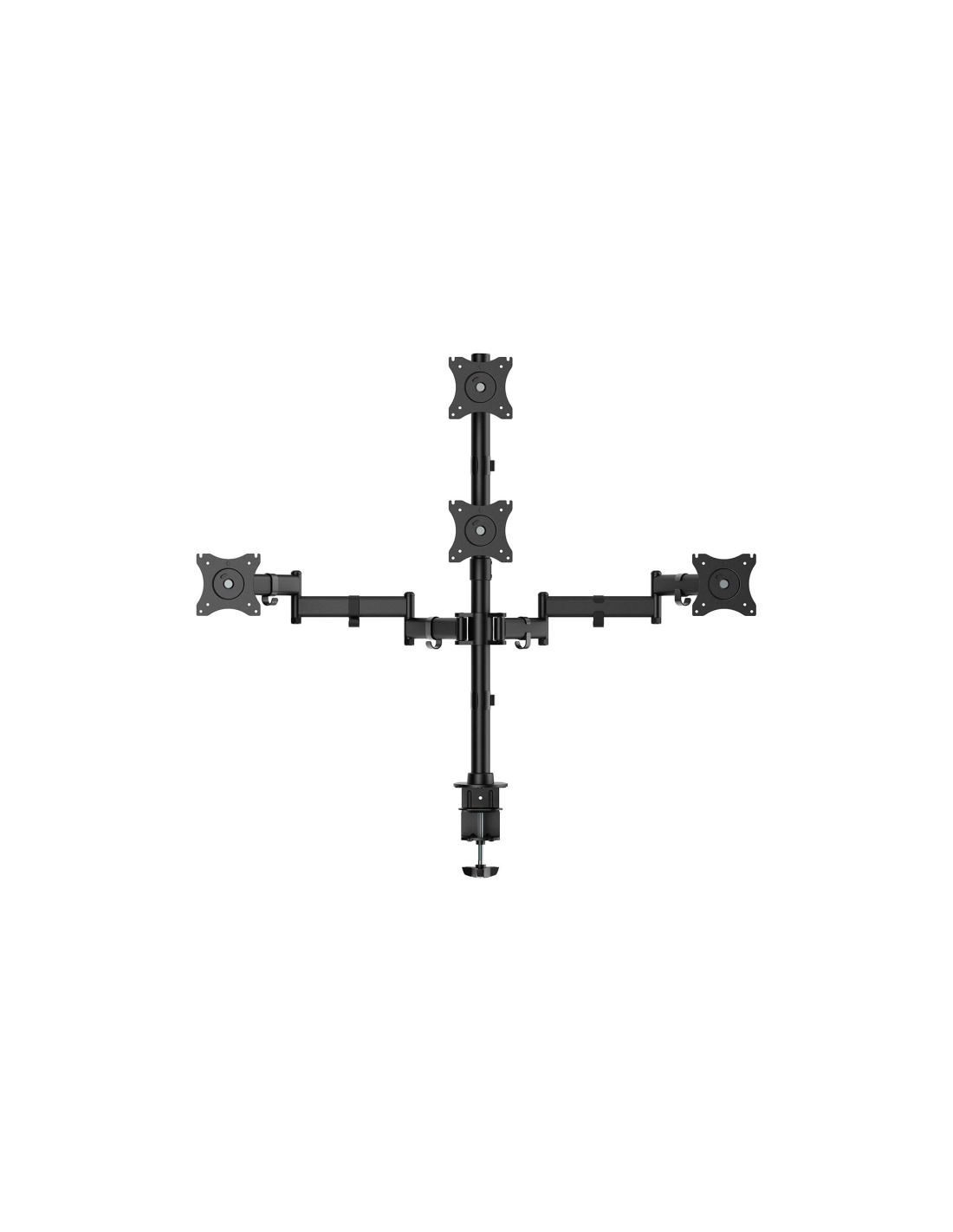 > Soporte de mesa eco giratorio e inclinable para 4 monitores (4 pivotes, 2 brazos) de 13”-27”