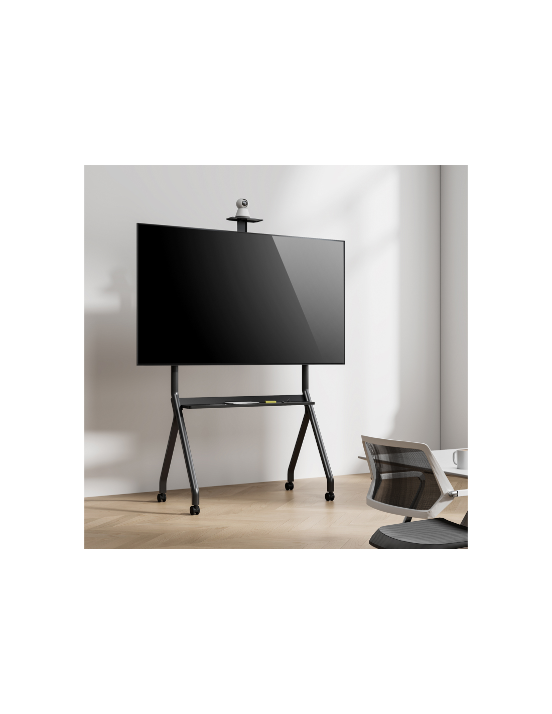 > Soporte de suelo pro con rueda, bandeja y soporte de cámara para pantalla interactiva/TV de 55”-100”