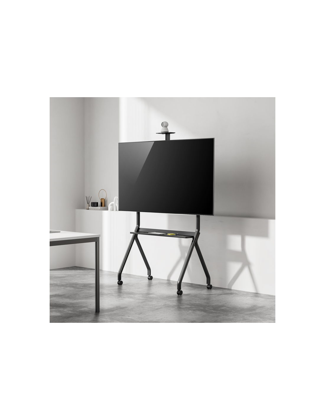 AISENS Soporte de Suelo Pro Con Rueda, 1 Bandeja Y Soporte de Camara Para Pantalla Interactiva/TV 120kg de 55"-100", Negro. Capacidad máxima de peso: 120 kg, Tamaño mínimo de pantalla: 139,7 cm (55"), Tamaño máximo de pantalla: 2,54 m (100"), Compatibilidad con interfaz de montaje (min): 200 x 200 mm, Compatibilidad con interfaz de montaje (max): 900 x 600 mm. Rango de ajustes de altura: 1150 - 1525 mm. Color del producto: Negro