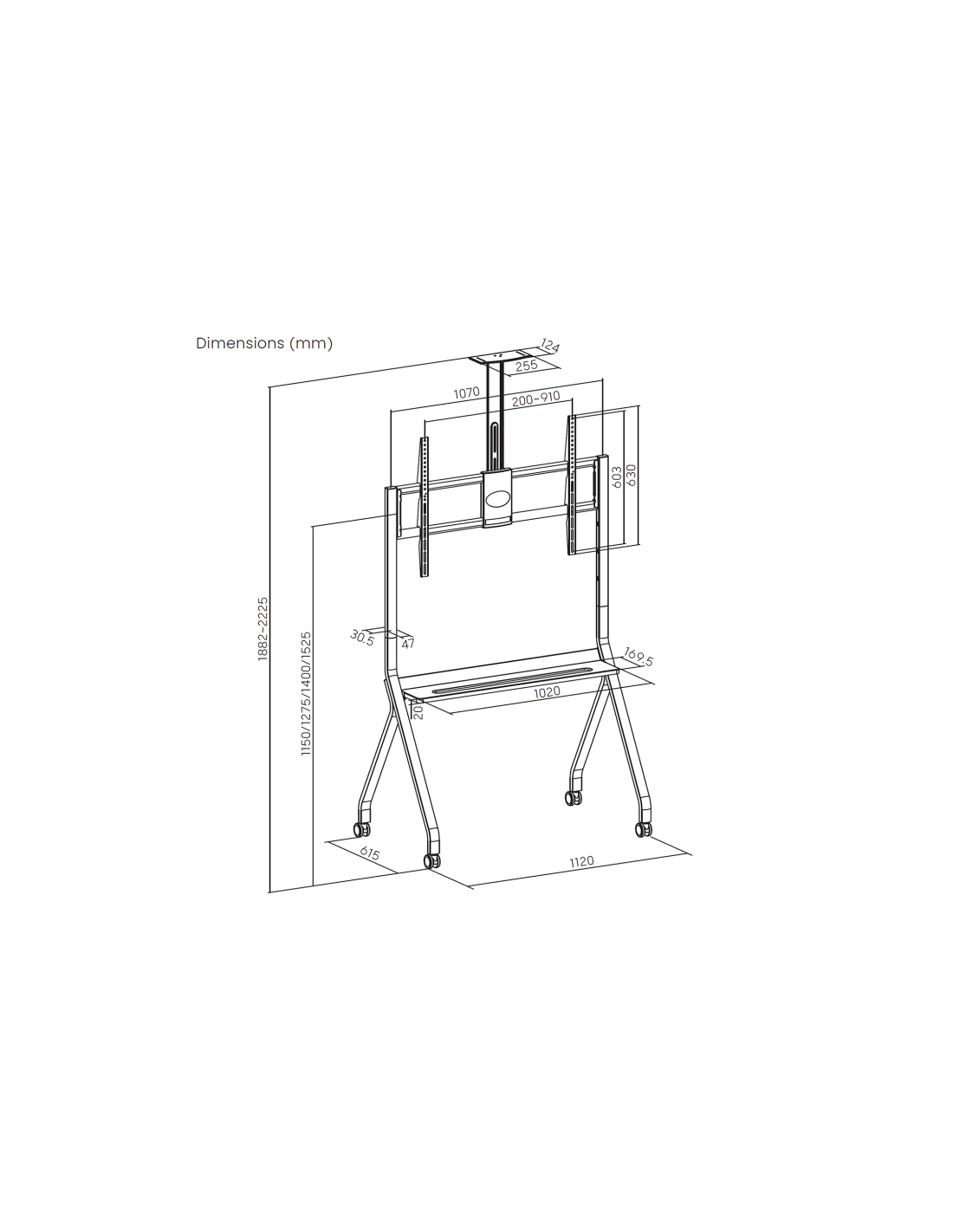 > Rango de ajuste para la altura del soporte TV: 1150 / 1275 / 1400 / 1525mm