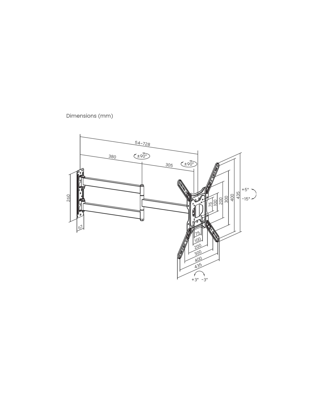 > Distancia de la pared: ajustable entre 54 y 728mm (depende de la instalación y del espacio disponible)