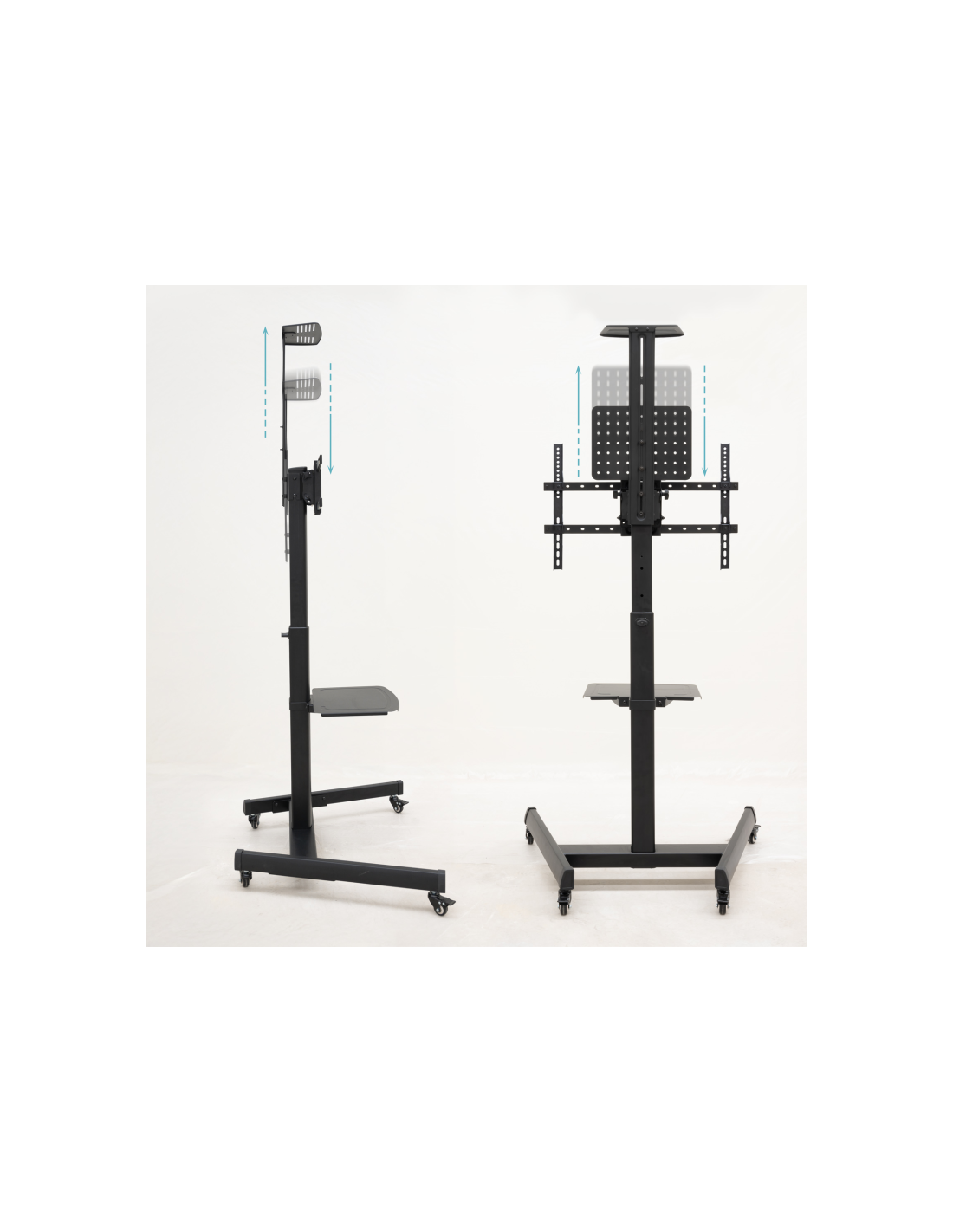 TooQ “COMETA” Soporte de Suelo con Ruedas con Regulación de Altura para Pantallas 37"- 70", Rotación 90°, Negro