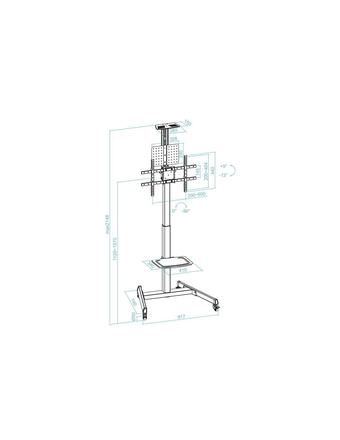 TooQ “COMETA” Soporte de Suelo con Ruedas con Regulación de Altura para Pantallas 37"- 70", Rotación 90°, Negro. Capacidad máxima de peso: 70 kg, Tamaño mínimo de pantalla: 94 cm (37"), Tamaño máximo de pantalla: 177,8 cm (70"), Compatibilidad con interfaz de montaje (min): 200 x 200 mm, Compatibilidad con interfaz de montaje (max): 600 x 400 mm. Rango de ajustes de altura: 1120 - 1570 mm, Ángulo de inclinación: -12 - 5°, Ángulo de rotación: 90°. Color del producto: Negro