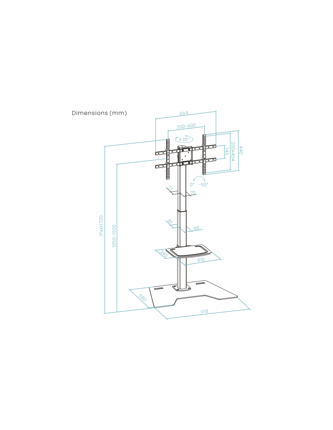 - Rango de ajuste de altura del soporte: 1050-1500 mm