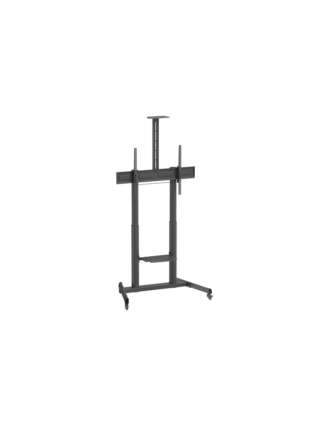 AISENS Soporte De Suelo Eco Con Ruedas Y Manivela, Bandeja Para DVD Y Soporte De Camara Para Monitor/TV 120kg De 60"-100", Negro. Capacidad máxima de peso: 120 kg, Tamaño mínimo de pantalla: 152,4 cm (60"), Tamaño máximo de pantalla: 2,54 m (100"), Compatibilidad con interfaz de montaje (min): 200 x 200 mm, Compatibilidad con interfaz de montaje (max): 1000 x 600 mm. Ángulo de inclinación: -10 - 5°. Color del producto: Negro
