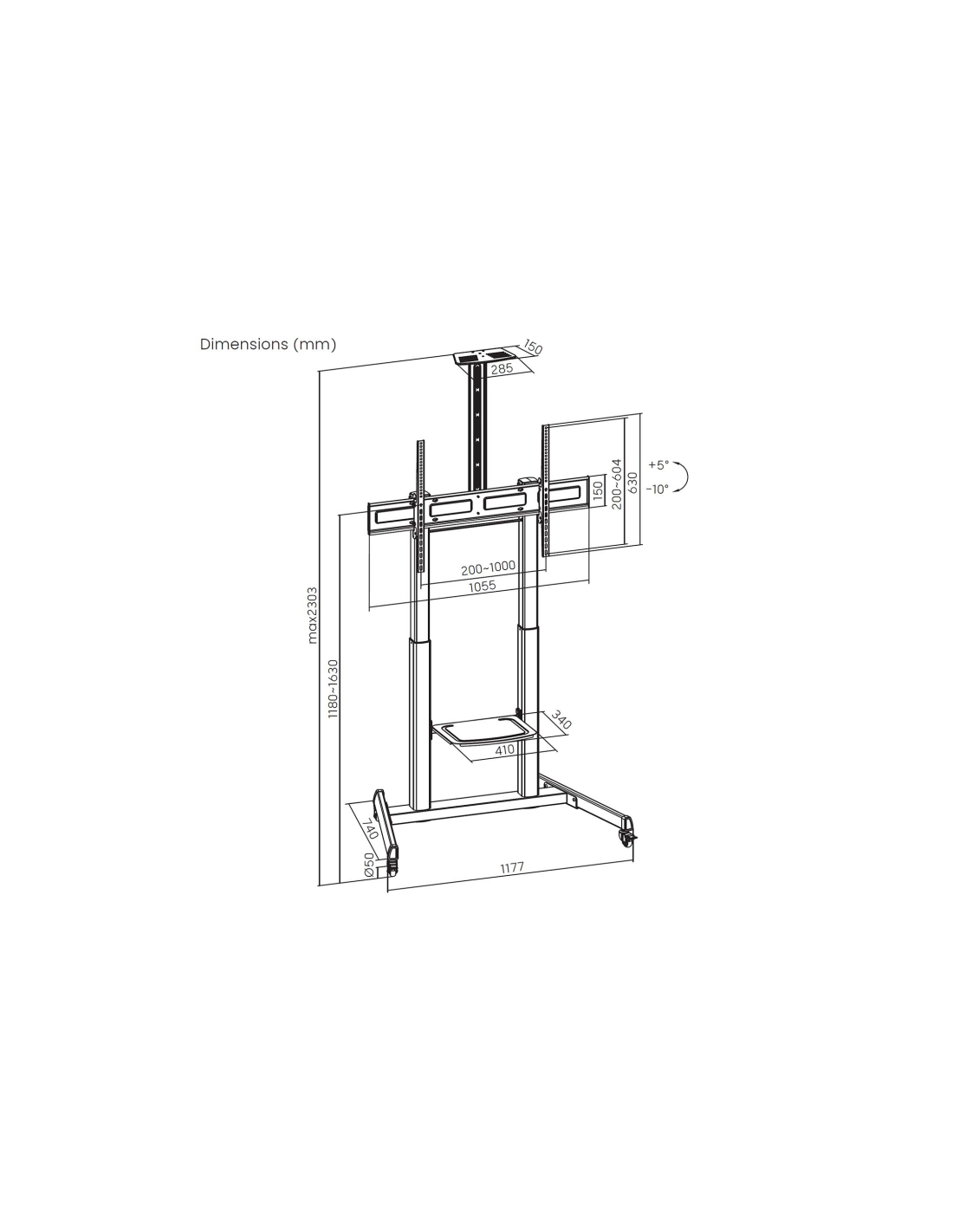 > Rango de ajuste para la altura del soporte TV: ajustable entre 1180 y 1630mm