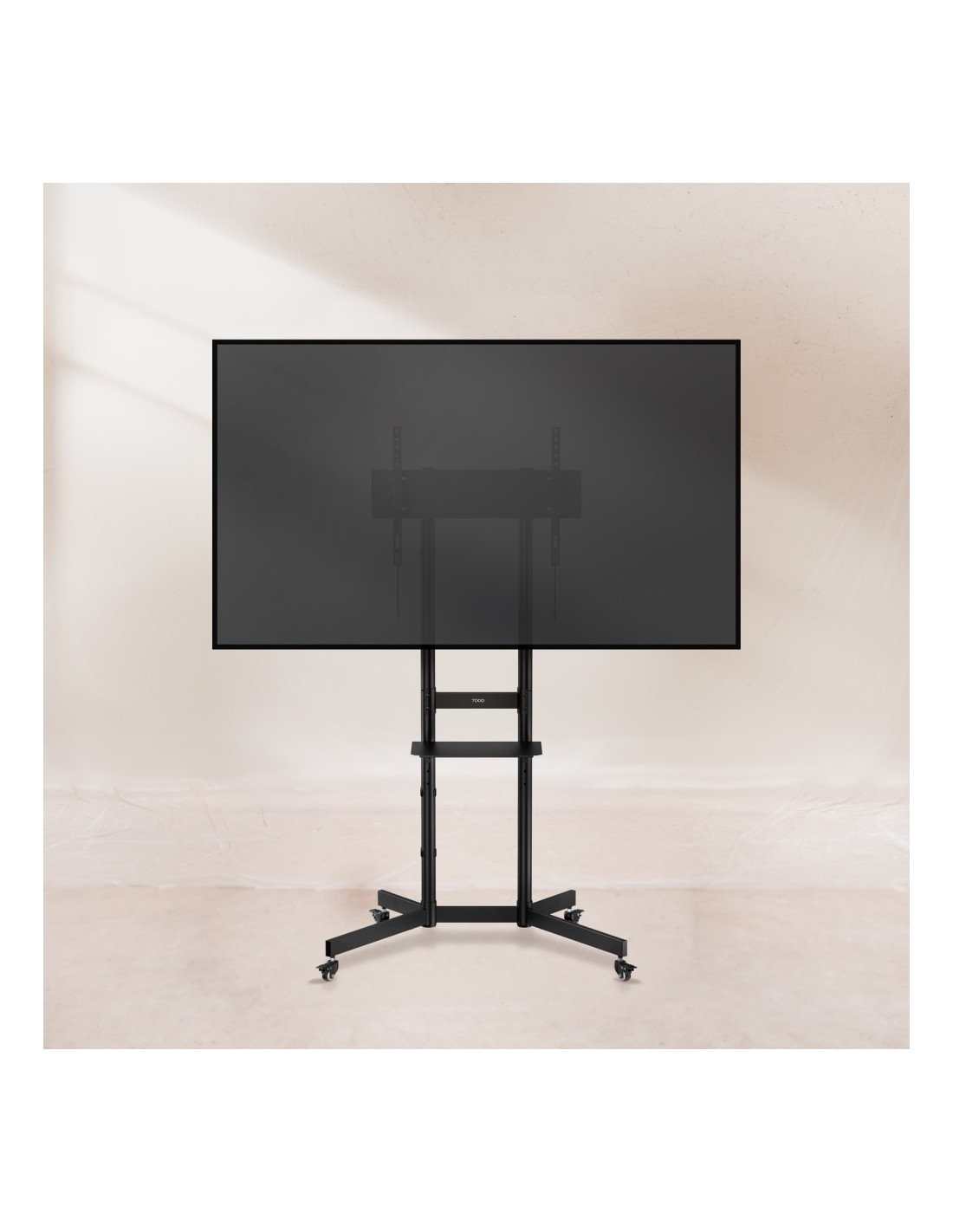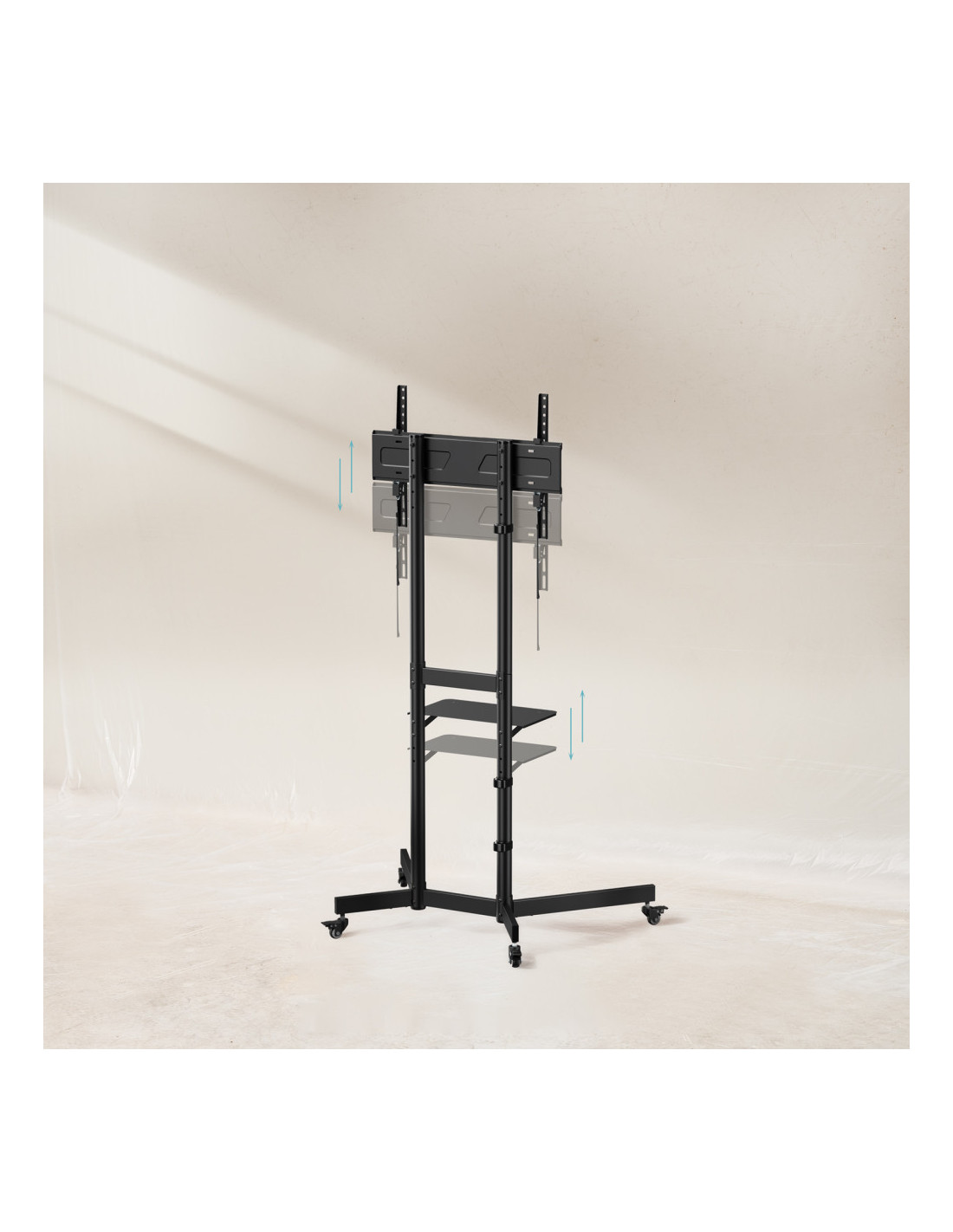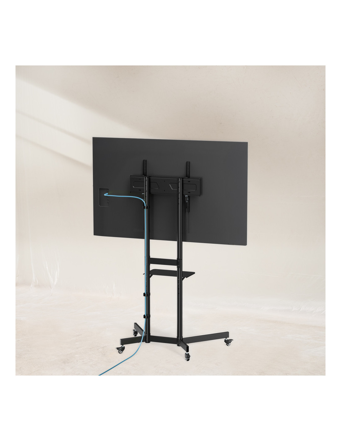 Convierte cualquier pantalla en un centro móvil de trabajo o presentación, combinando estabilidad, fluidez y presencia. Su altura regulable y su bandeja integrada permiten crear un espacio versátil que se adapta a cada situación, desde una reunión improvisada hasta un evento en movimiento.
