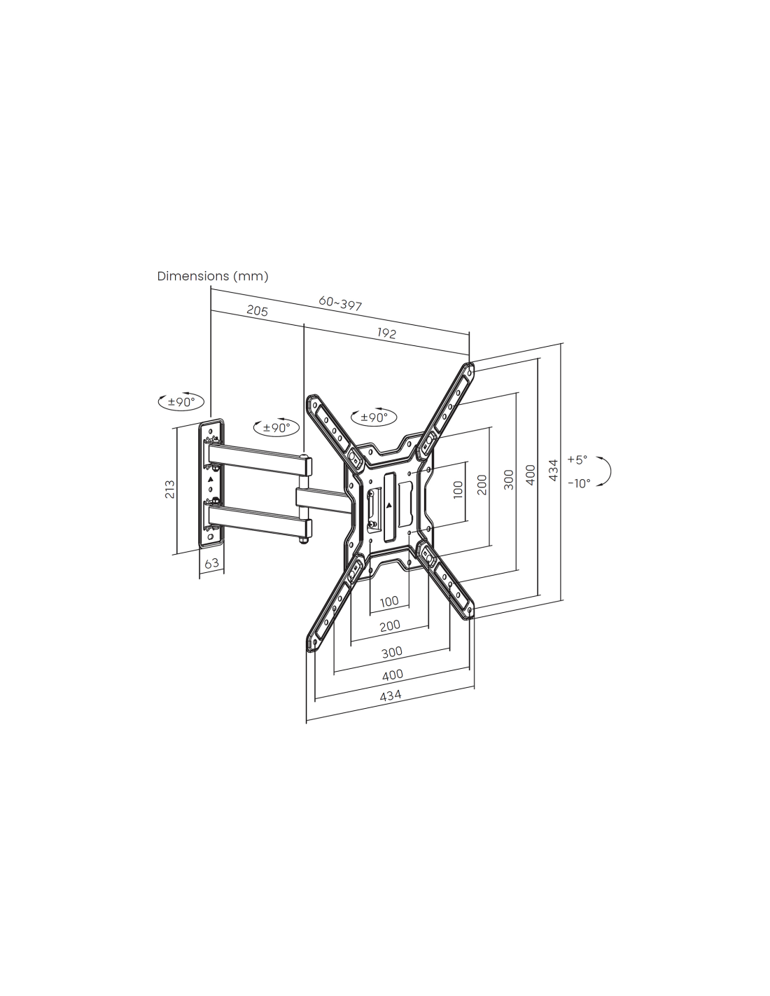 > VESA Máximo: 400x400mm (Compatible con VESA de 1100×100, 100×200, 200×100, 200×200, 200×300, 300×200, 200×400, 400×200, 300×300, 400×300, 400x400mm)