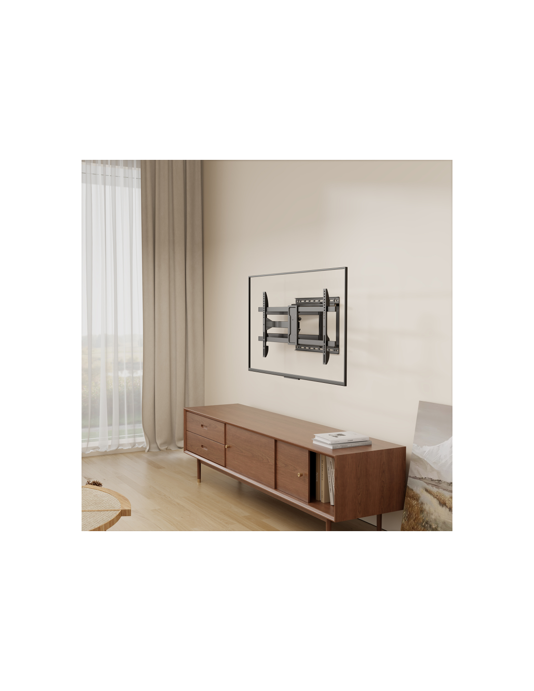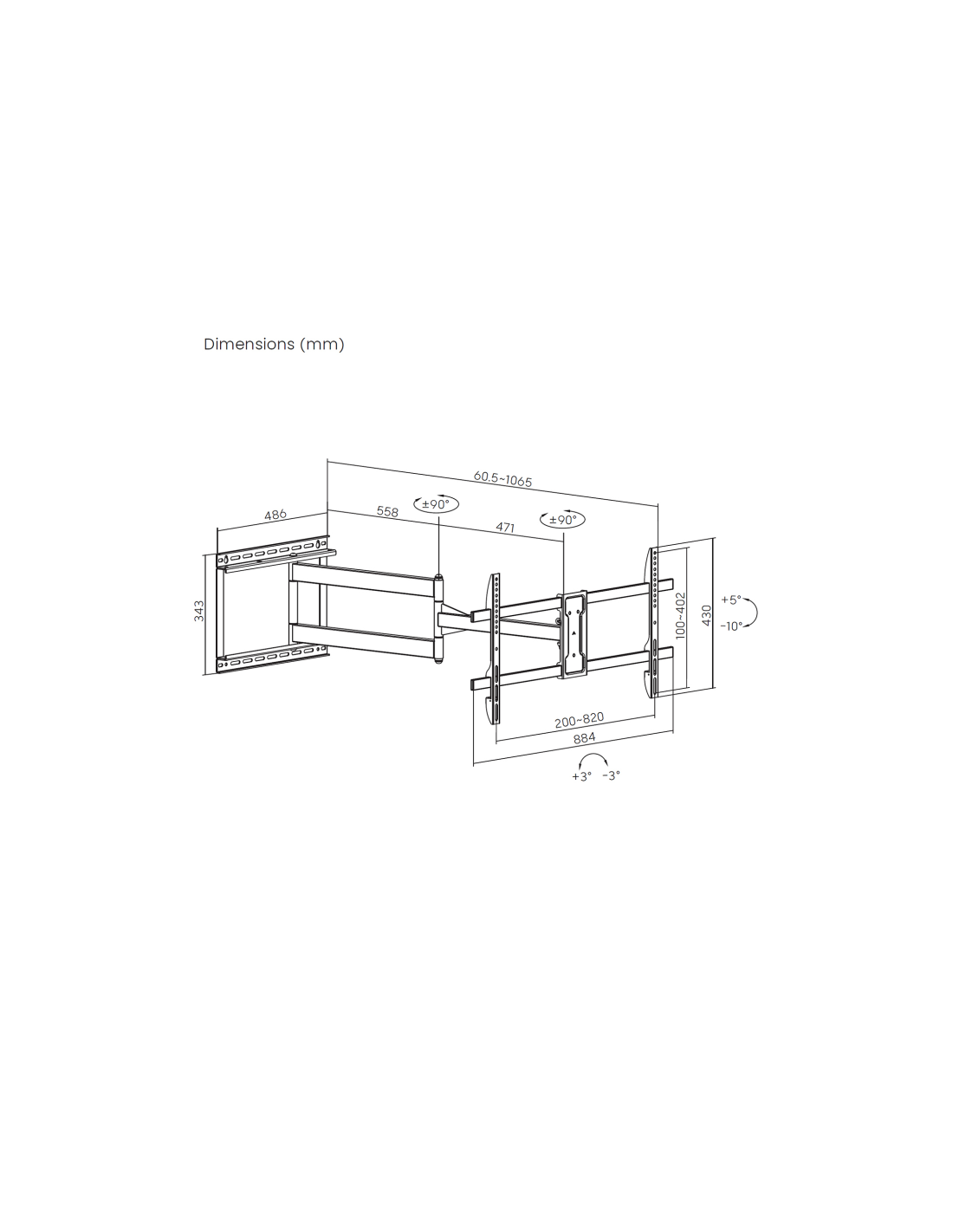 > Distancia de la pared: ajustable entre 60,5 y 1065mm (depende de la instalación y del espacio disponible)