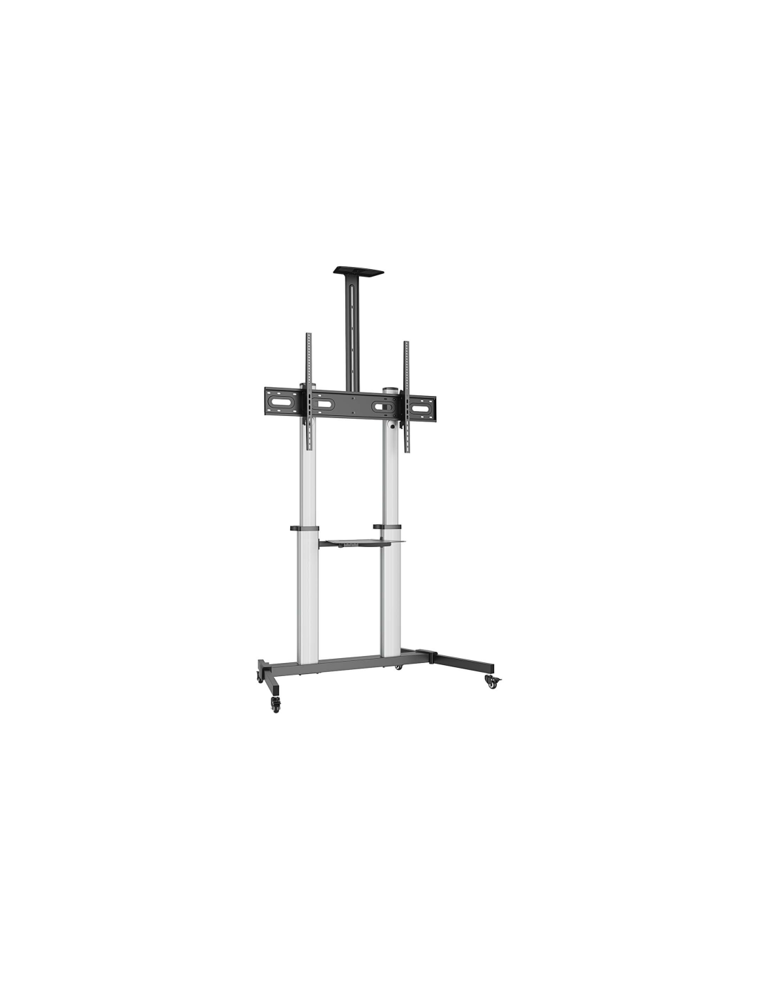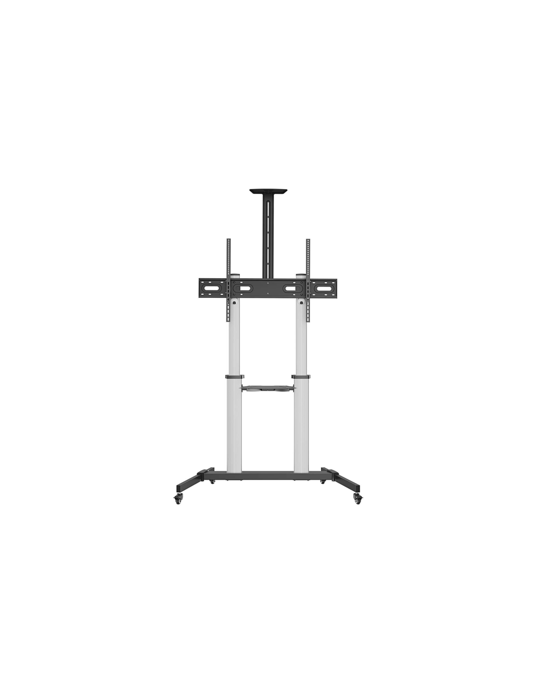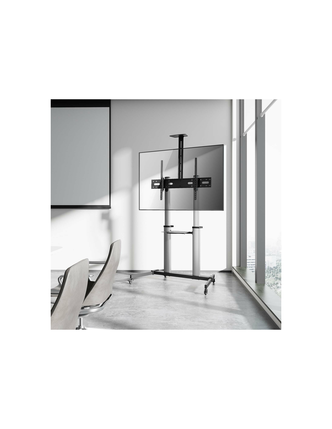 AISENS Soporte de suelo PRO con ruedas, bandeja para DVD y soporte de cámara para Monitor/TV 100Kg de 60-100, Negro-Plata. Tamaño mínimo de pantalla: 152,4 cm (60"), Tamaño máximo de pantalla: 2,54 m (100"), Compatibilidad con interfaz de montaje (min): 200 x 200 mm, Compatibilidad con interfaz de montaje (max): 1000 x 600 mm. Rango de ajustes de altura: 1200 - 1600 mm, Ángulo de inclinación: -10 - 5°. Color del producto: Negro, Plata