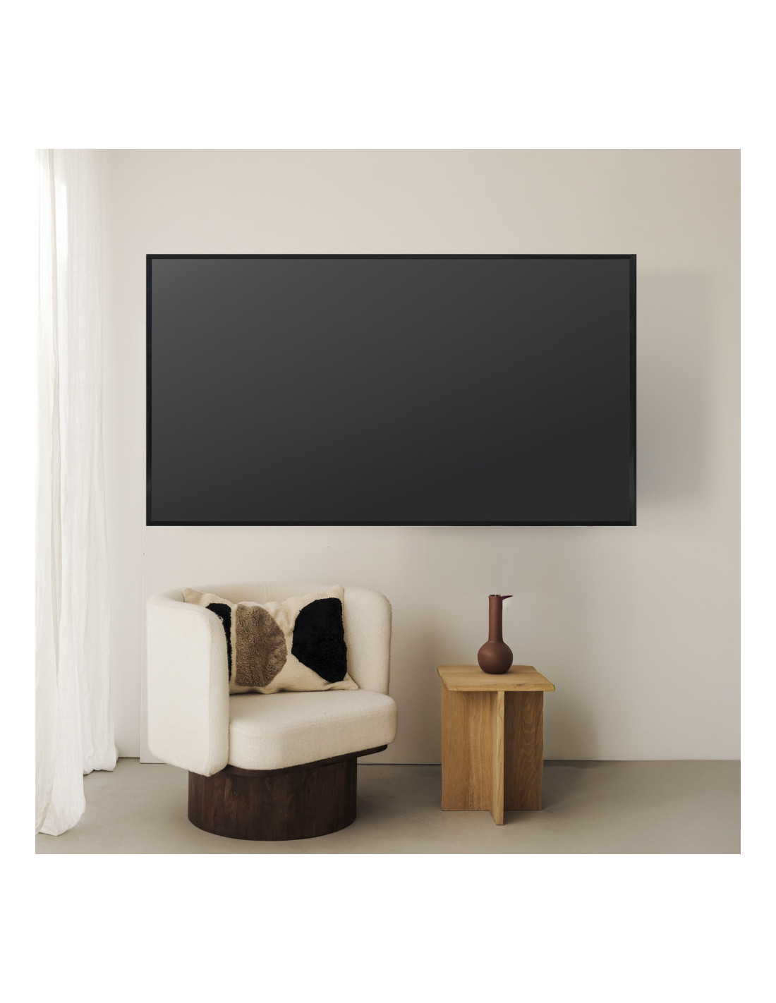 Un soporte que no busca protagonismo, pero lo cambia todo: minimalismo firme, discreción absoluta y una pantalla que parece flotar sin esfuerzo, transformando cualquier pared en un espacio más limpio, elegante y seguro.