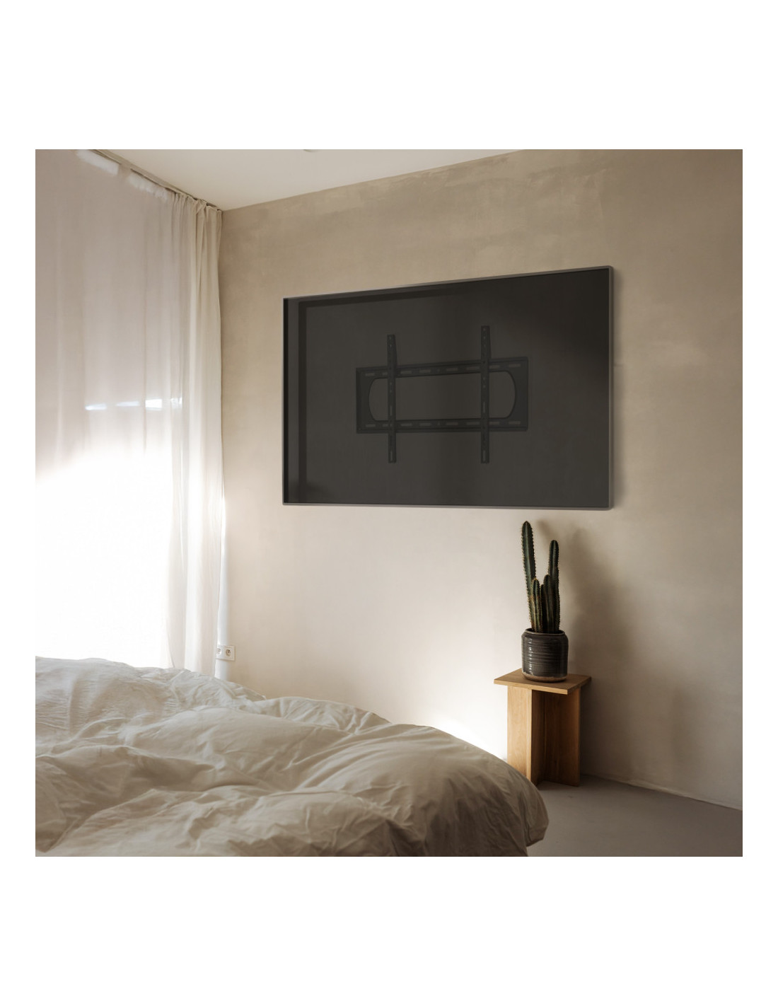 Un soporte que no busca protagonismo, pero lo cambia todo: minimalismo firme, discreción absoluta y una pantalla que parece flotar sin esfuerzo, transformando cualquier pared en un espacio más limpio, elegante y seguro.