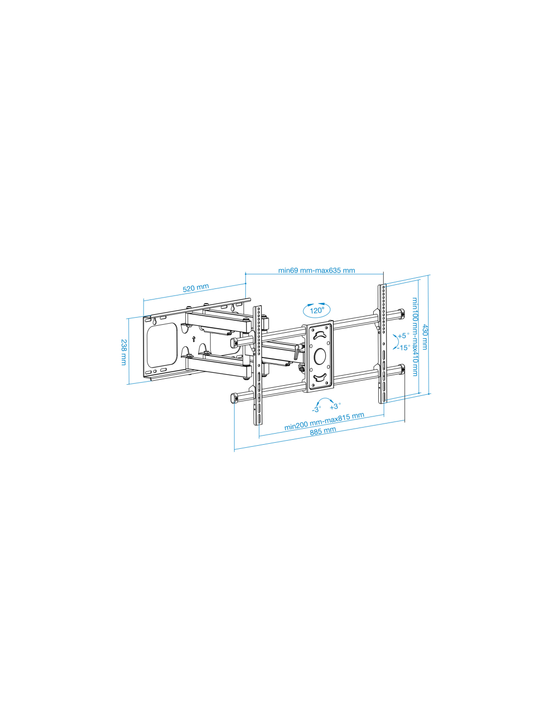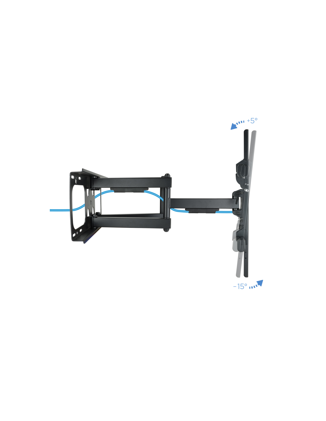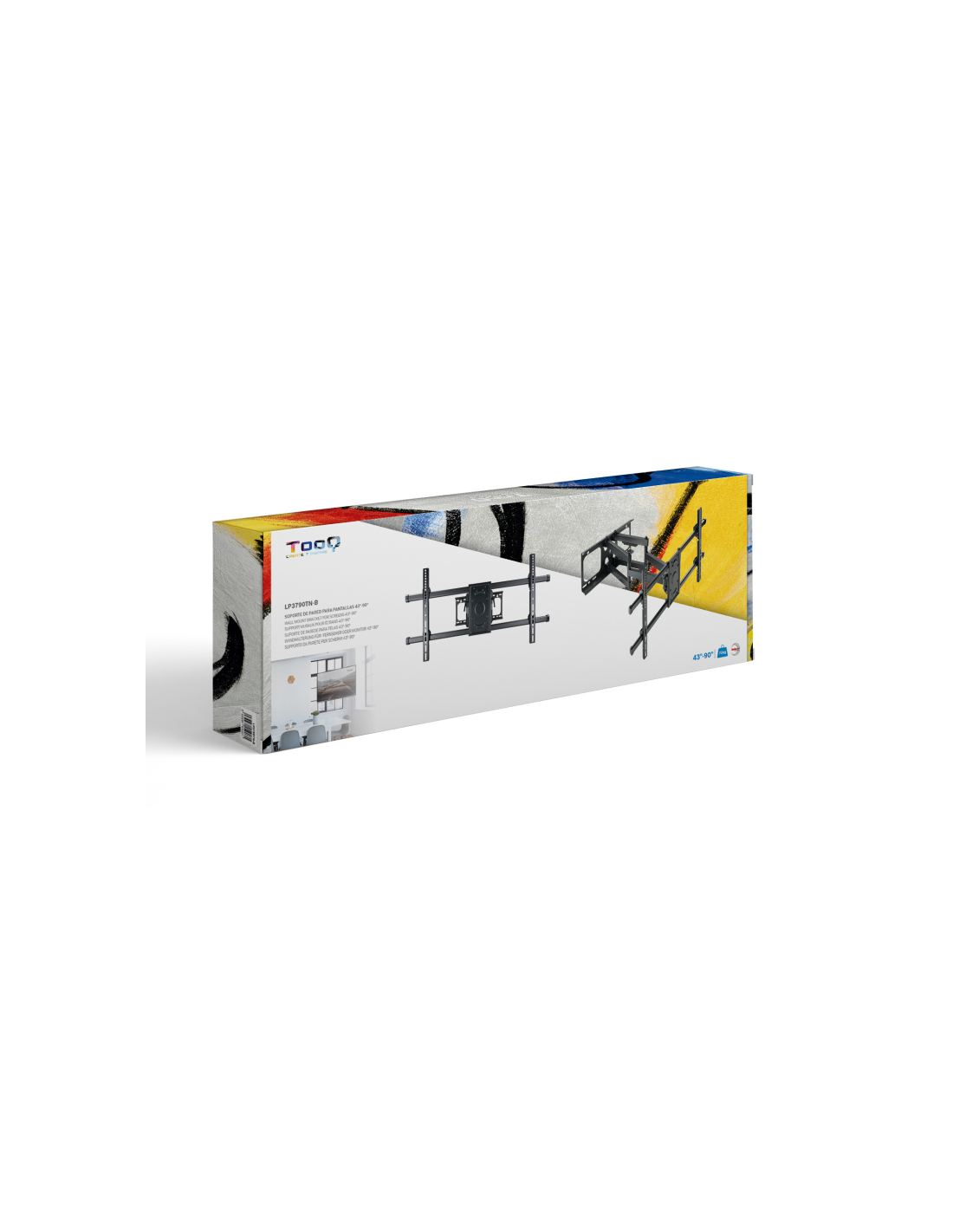 TooQ LP3790TN-B. Capacidad máxima de peso: 75 kg, Tamaño mínimo de pantalla: 109,2 cm (43"), Tamaño máximo de pantalla: 2,29 m (90"), Compatibilidad con interfaz de montaje (min): 200 x 200 mm, Compatibilidad con interfaz de montaje (max): 800 x 400 mm. Ángulo de inclinación: -15 - 5°, Ángulo de giro (alcance): -60 - 60°, Distancia a la pared (min): 6,9 cm, Distancia a la pared (max): 63,5 cm. Color del producto: Negro