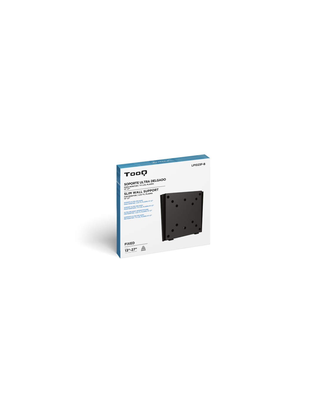 TooQ SOPORTE ULTRA DELGADO PARA MONITOR / TV LCD, PLASMA DE 10-23, NEGRO. Capacidad máxima de peso: 30 kg, Tamaño mínimo de pantalla: 25,4 cm (10"), Tamaño máximo de pantalla: 58,4 cm (23"), Compatibilidad con interfaz de montaje (min): 50 x 50 mm, Compatibilidad con interfaz de montaje (max): 100 x 100 mm. Distancia a la pared (min): 1,5 cm. Color del producto: Negro