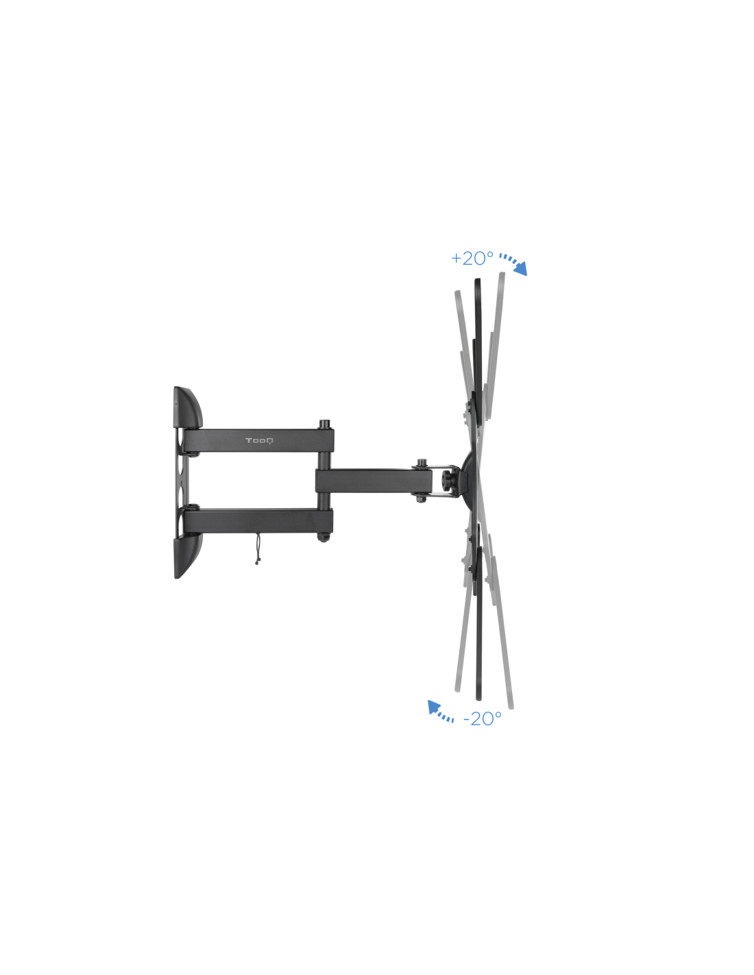 TooQ Soporte Giratorio e Inclinable para Monitor / TV LCD, Plasma de 23”- 55”, con Tres Pivotes, Negro. Capacidad máxima de peso: 30 kg, Tamaño mínimo de pantalla: 58,4 cm (23"), Tamaño máximo de pantalla: 139,7 cm (55"), Compatibilidad con interfaz de montaje (min): 75 x 75 mm, Compatibilidad con interfaz de montaje (max): 400 x 400 mm. Ángulo de inclinación: -20 - 20°, Ángulo de rotación: 180°, Distancia a la pared (min): 8,8 cm, Distancia a la pared (max): 20,1 cm. Color del producto: Negro