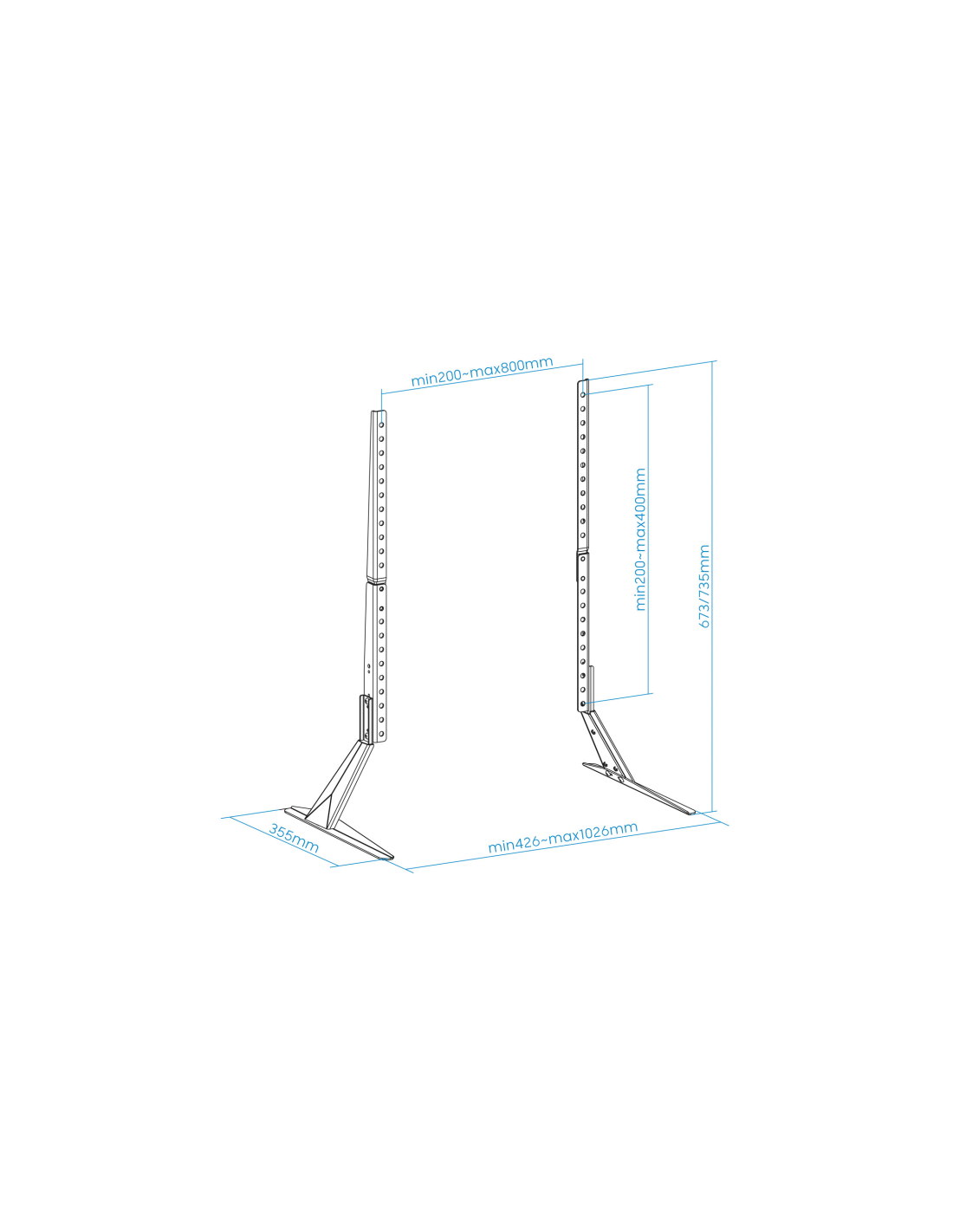 TooQ Soporte de mesa para pantallas 23”-75”. Capacidad máxima de peso: 40 kg, Tamaño mínimo de pantalla: 58,4 cm (23"), Tamaño máximo de pantalla: 190,5 cm (75"), Compatibilidad con interfaz de montaje (min): 200 x 200 mm, Compatibilidad con interfaz de montaje (max): 800 x 400 mm. Rango de ajustes de altura: 673 - 735 mm. Color del producto: Negro