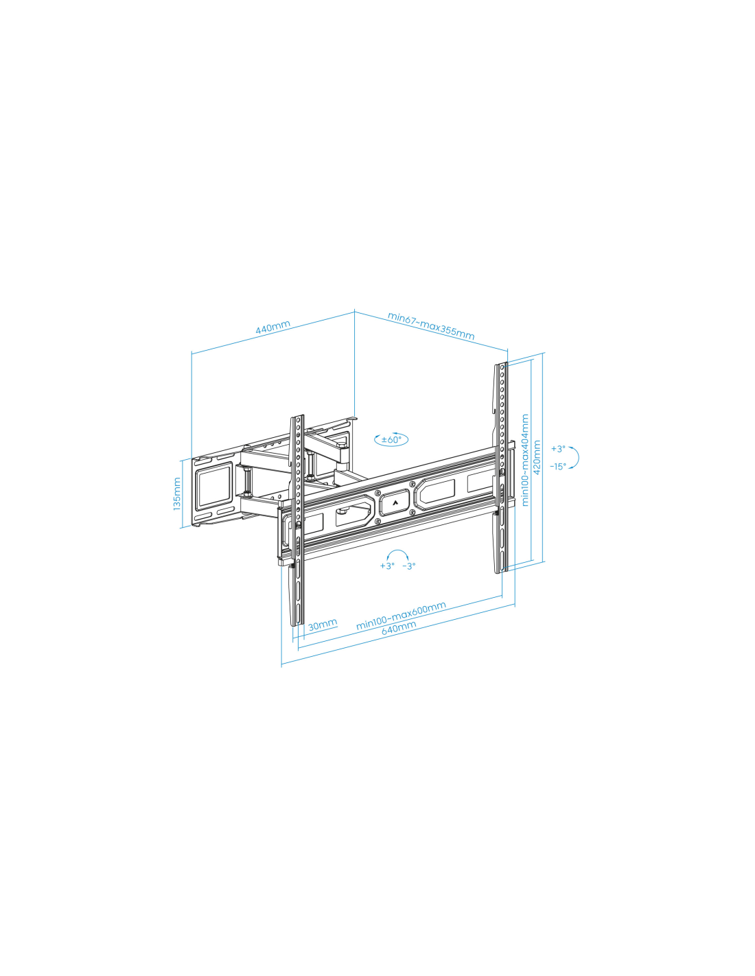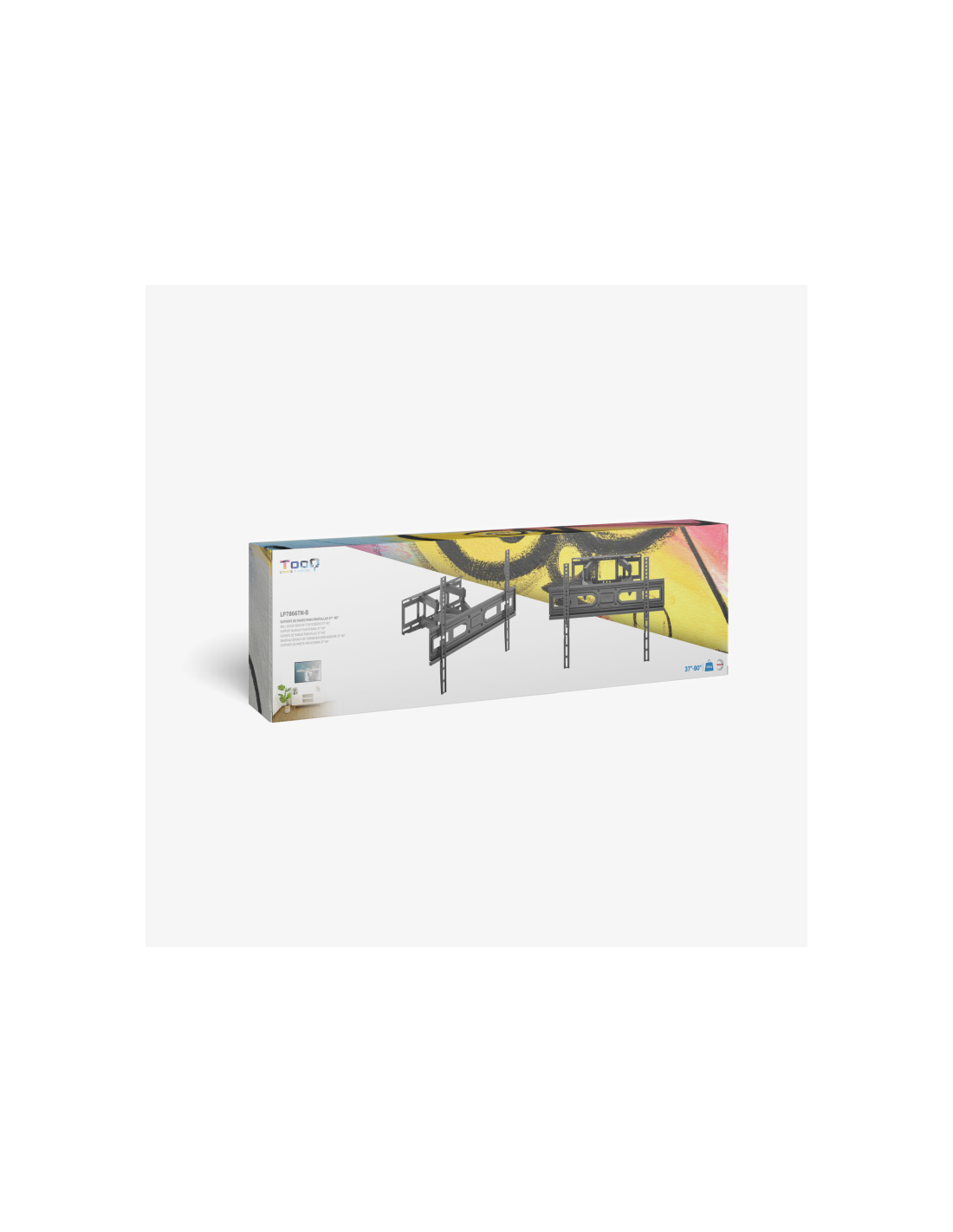 TooQ Soporte de pared para pantallas 37”- 80”. Capacidad máxima de peso: 40 kg, Tamaño mínimo de pantalla: 94 cm (37"), Tamaño máximo de pantalla: 2,03 m (80"), Compatibilidad con interfaz de montaje (min): 100 x 100 mm, Compatibilidad con interfaz de montaje (max): 600 x 400 mm. Ángulo de inclinación: -15 - 3°, Ángulo de giro (alcance): -60 - 60°, Distancia a la pared (min): 6,7 cm, Distancia a la pared (max): 35,5 cm. Color del producto: Negro