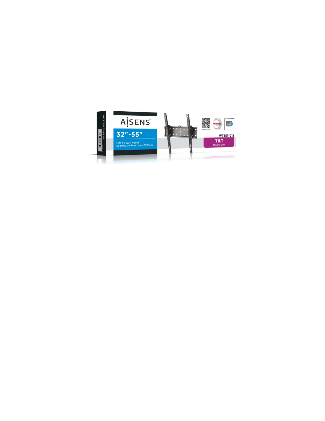 AISENS WT55T-015. Capacidad máxima de peso: 40 kg, Tamaño mínimo de pantalla: 139,7 cm (55"), Tamaño máximo de pantalla: 81,3 cm (32"). Ángulo de inclinación: -12 - 12°. Color del producto: Negro