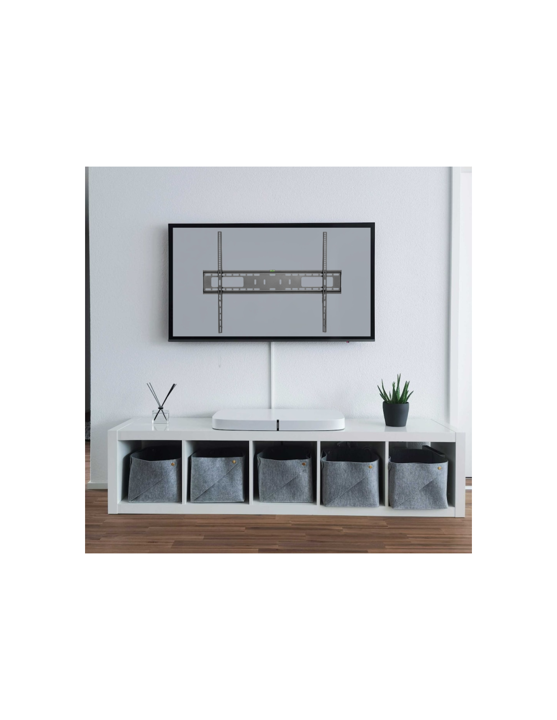 El soporte para pared EW1504 para TV XXL pesadas de tamaño extra-grande es la solución ideal para instalar su televisor (con tamaño desde 60 hasta 100 pulgadas y peso máximo de 75 kg) extremadamente cerca de la pared. El soporte tiene un perfil delgado de 30,5 mm y es adecuado para todos los televisores con un estándar de montaje VESA 200x200,300x200,300x300,400x200,400x300,400x400,600x400,600x600,800x600,900x600. El sistema de seguridad mantiene el televisor de forma segura en su lugar.