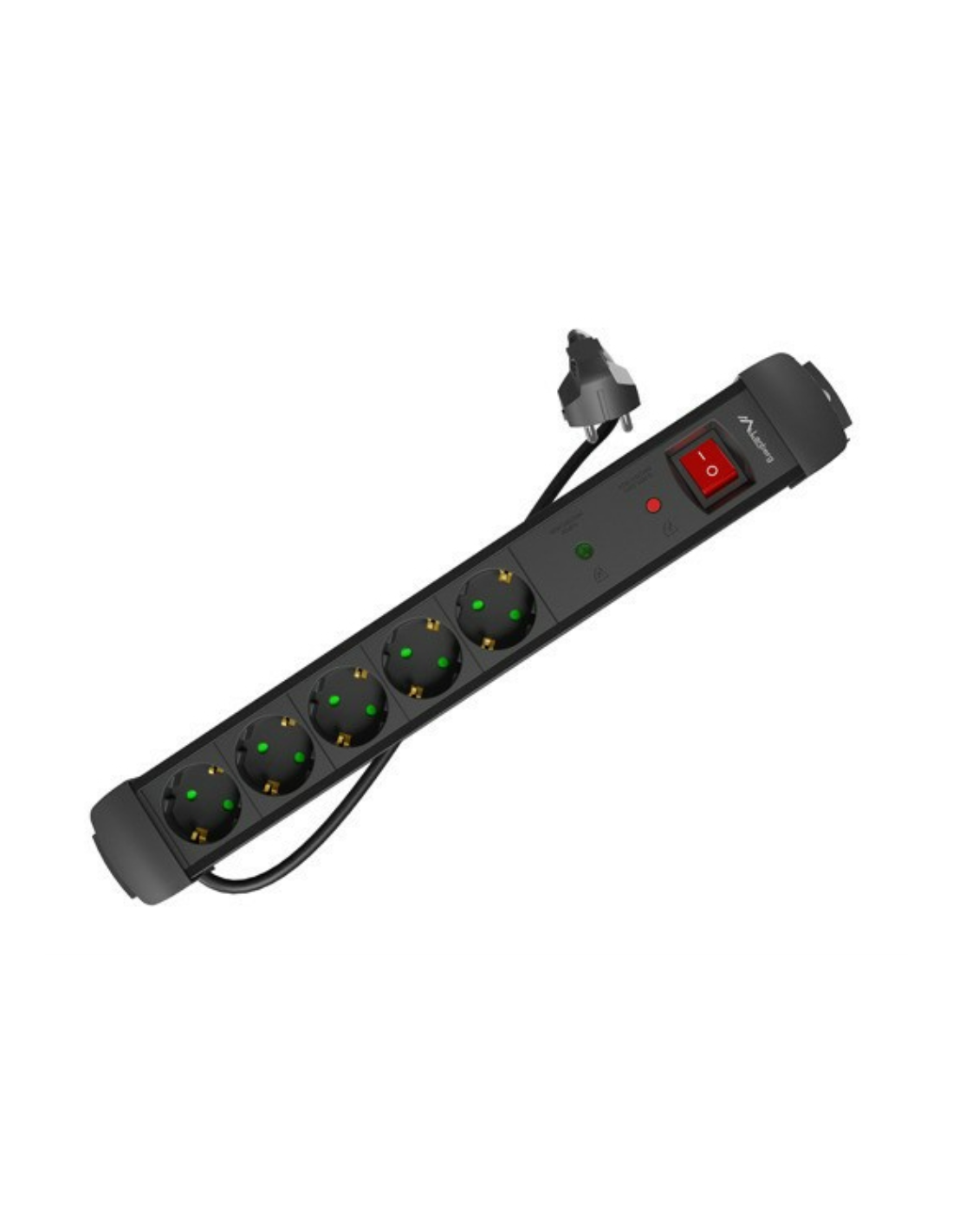 Lanberg SP1-05F-0500-BK. Longitud de cable: 5 m, Colocación soportada: Interior, Tipo de salida AC: Tipo F. Cantidad de salidas AC: 5 salidas AC. Potencia máx. de entrada: 2500 W, Máxima corriente: 10 A, Funciones de protección de poder: Supresor de sobretensiones. Número de productos incluidos: 1 pieza(s)