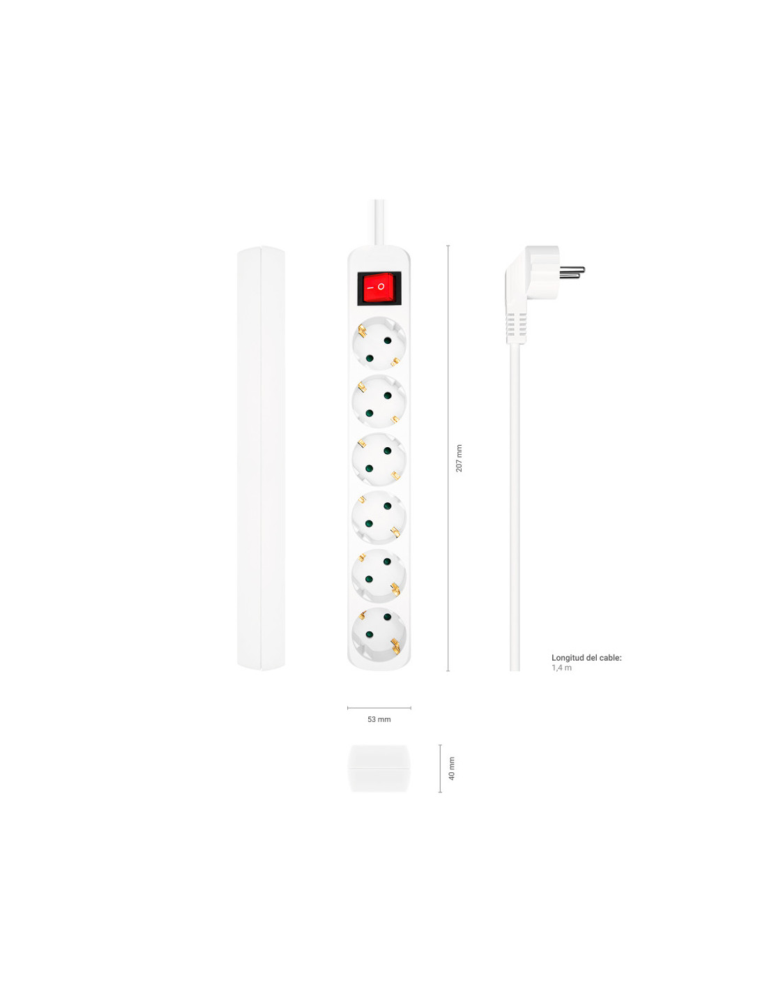 AISENS A154-0535 Extensió de potència 1,4 m 6 endoll(s) AC Interiors Blanc