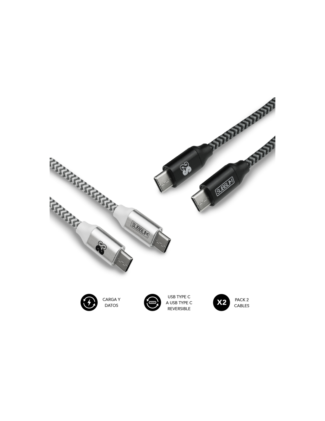 SUBBLIM PACK 2 CABLES USB TIPO USB-C A USB-C 1 M BLACK/SILVER