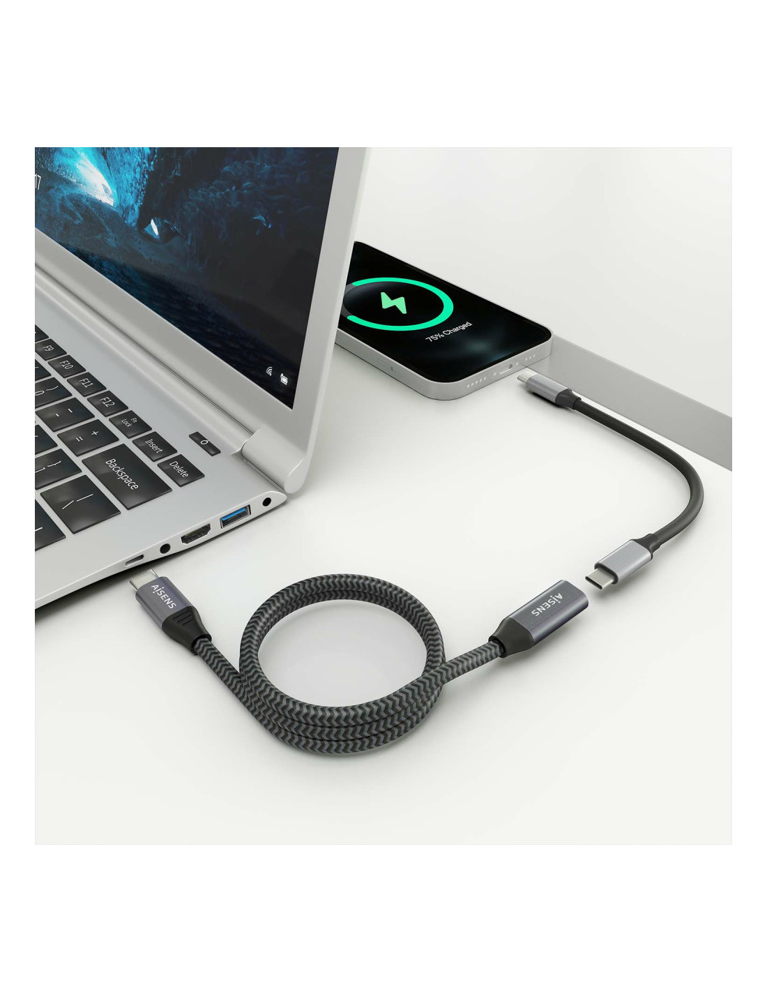 Cable USB 3.2 GEN2x2 20Gbps con conector tipo USB-C macho en un extremo y USB-C hembra en el otro.