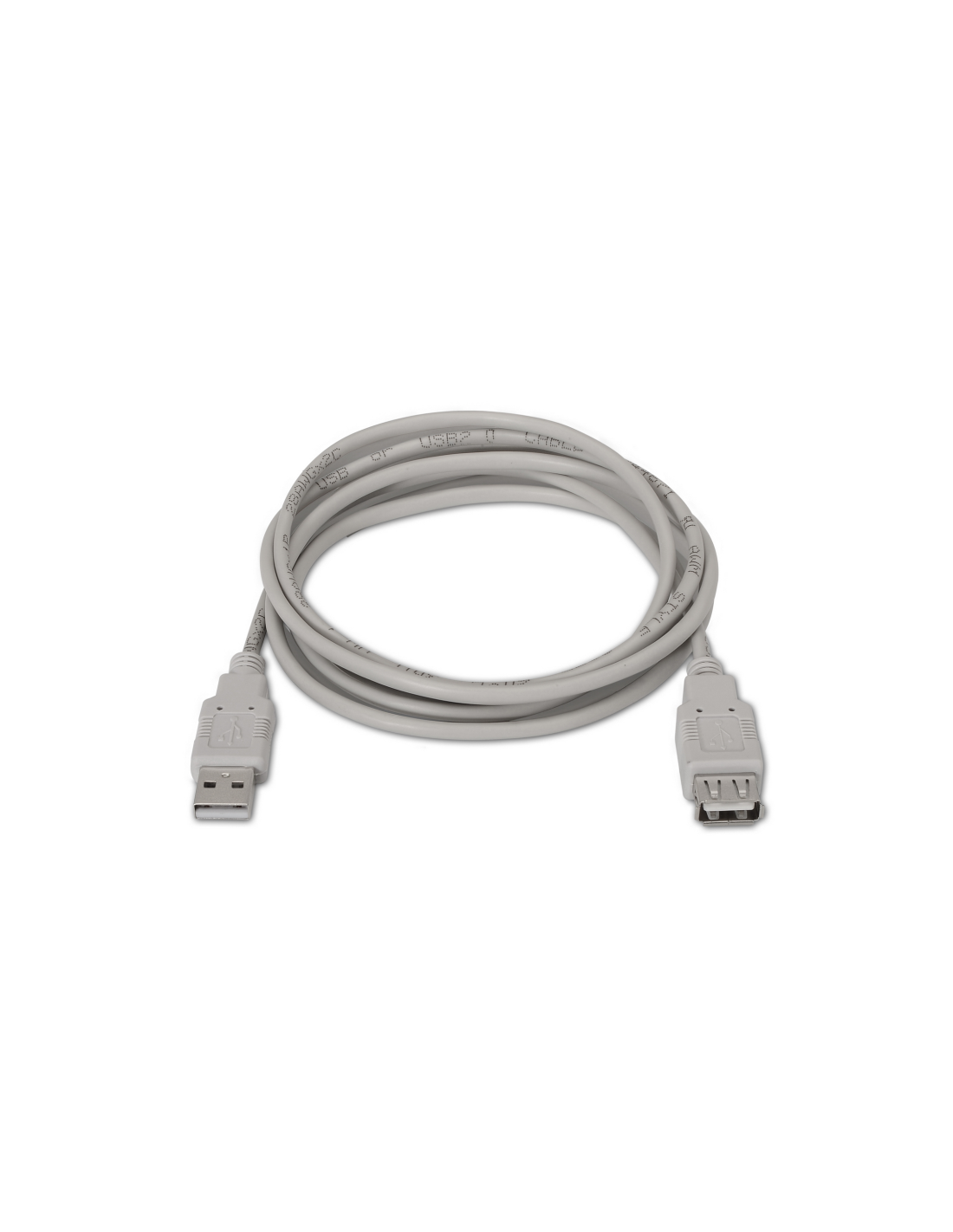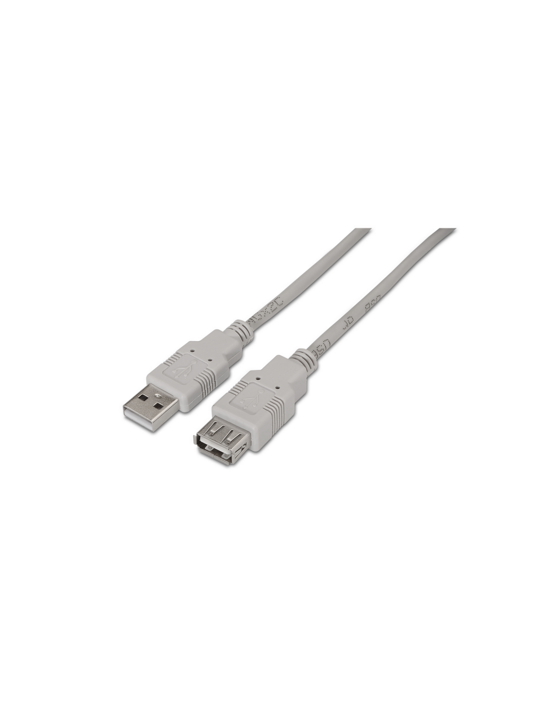 Cable prolongador USB 2.0 con conector tipo A macho en un extremo y tipo A hembra en el otro.