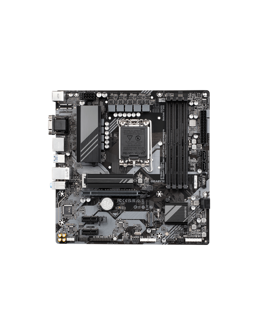 GIGABYTE B760M DS3H Placa Base - Compatible con procesadores Intel Core de 14ª generación, VRM digital de 6+2+1 fases, hasta 7600MHz DDR5 (OC), 2x PCIe 4.0 M.2, LAN 2.5GbE, USB 3.2 Gen. Fabricante de procesador: Intel, Socket de procesador: LGA 1700, Procesador compatible: Intel® Celeron®, Intel® Core™ i3, Intel® Core™ i5, Intel® Core™ i7, Intel® Core™ i9,.... tipos de memoria compatibles: DDR5-SDRAM, Memoria interna máxima: 256 GB, Tipo de ranuras de memoria: DIMM. Interfaces de disco de almacenamiento sop