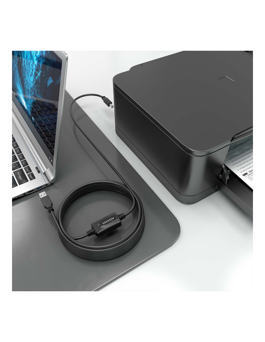 AISENS - Cable USB 2.0 con Amplificador, Tipo A/M-B/M, Negro, 10m