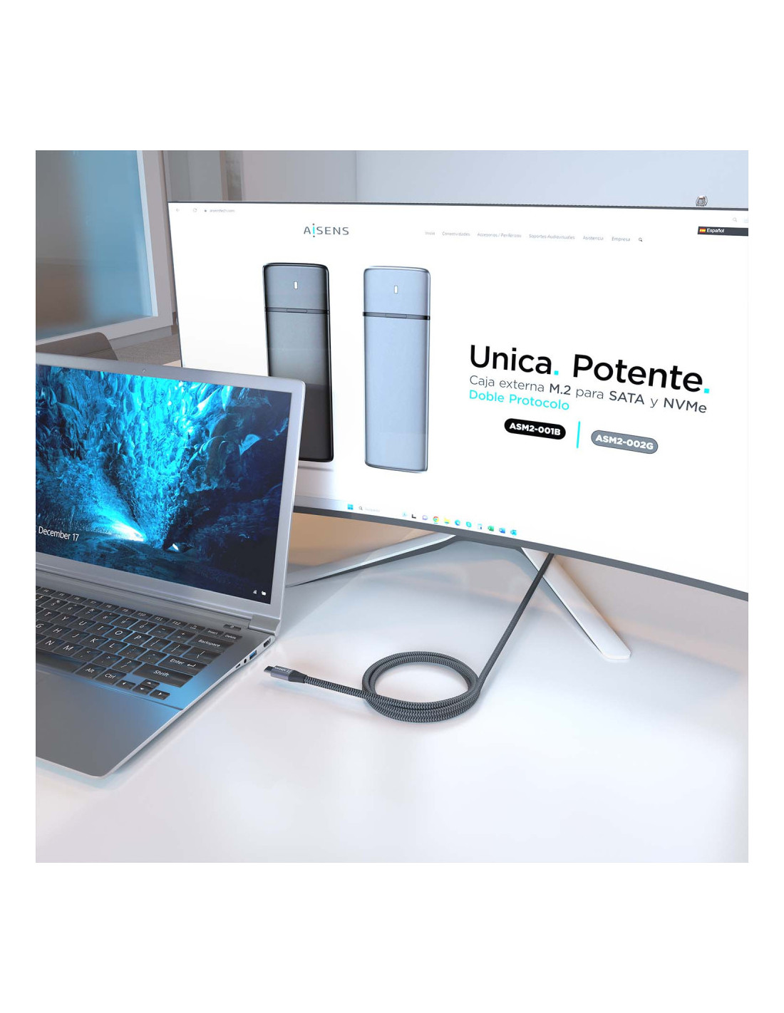 AISENS - Cable USB 3.2 Gen2x2 Aluminio 20Gbps 8K@30Hz 5A 100W E-Mark, Tipo USB-C/M-USB-C/M, Gris, 3.0m